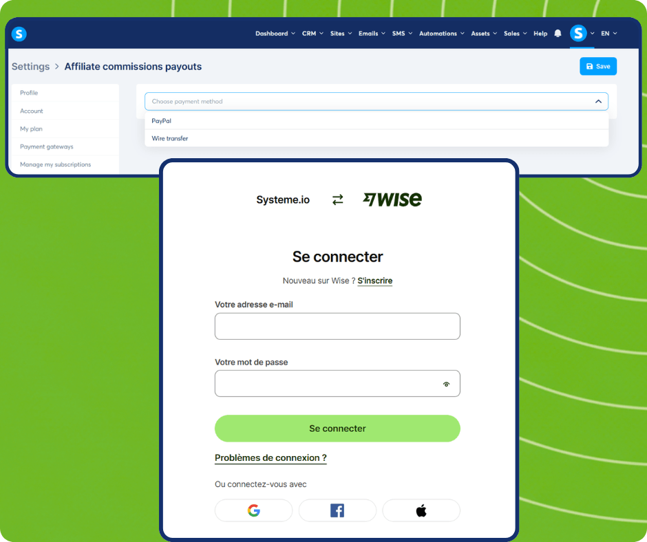 Pay all your affiliates in one click. Connect your Wise account to handle bulk transfers, or manage individual payments via PayPal or wire transfer directly from your dashboard