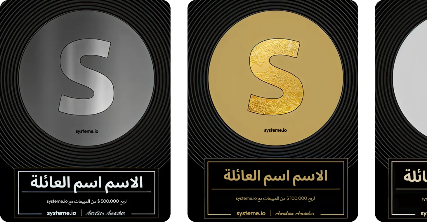 أنت مؤهّل للحصول على جائزة جديدة في كل مرة تحقّق فيها إنجازًا ماليًا جديدًا في حسابك على systeme.io!