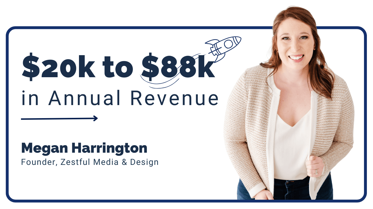 But with a powerful strategy and the right all-in-one tool, Megan transformed her struggling freelance gig into Zestful Media & Design, a thriving, multiple six-figure creative agency.