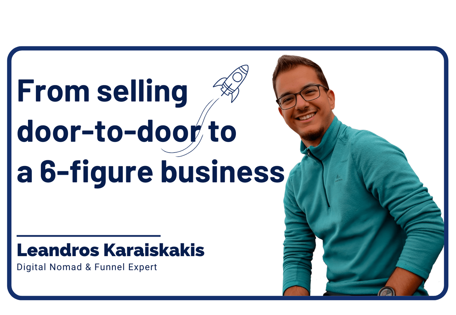 Everything changed when Leandros discovered the concept of sales funnels. He realized he could build a system that did the selling for him, reaching thousands of people a day without knocking on a single door