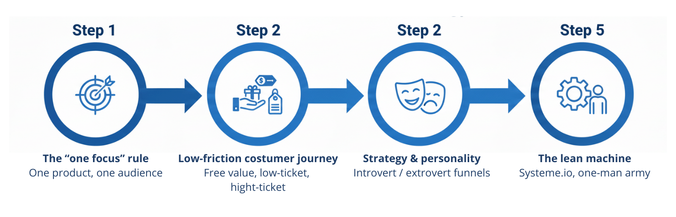 He spent years working as a "Done-For-You" service provider, building complex funnels for high-level clients. But as he looked to expand his income, he wanted to launch his own digital products and coaching services