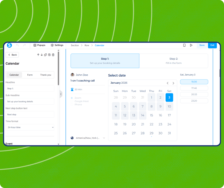 Stop trading emails. Let clients book meetings and pay for sessions directly inside your sales funnels