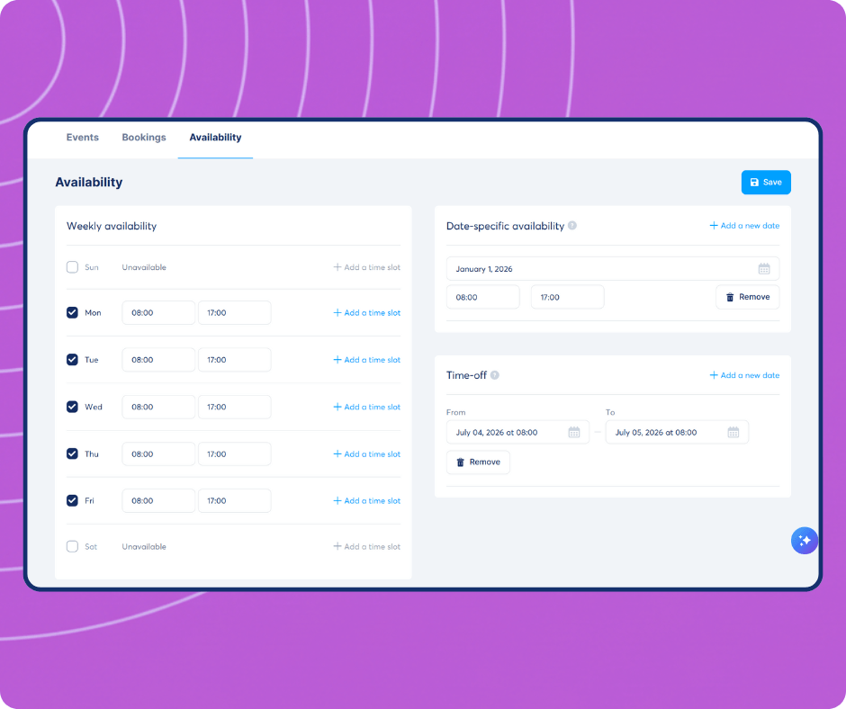 Set precise limits and add automated buffer times between appointments to ensure you always have time to recharge