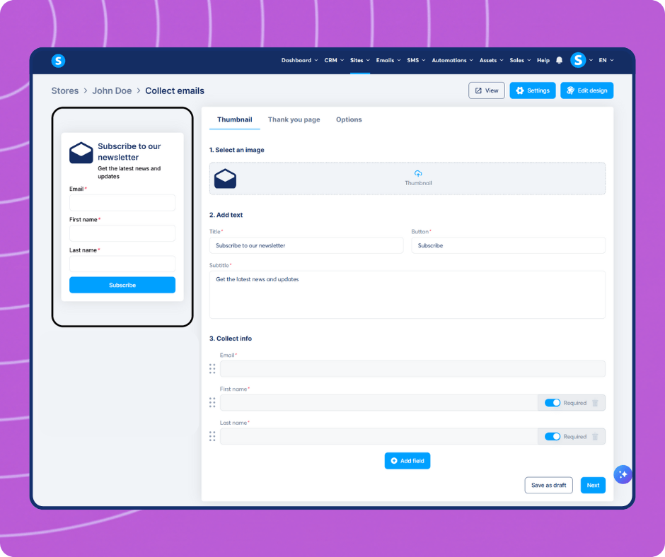 Collect leads effortlessly by offering free downloads or newsletter signups directly on your store