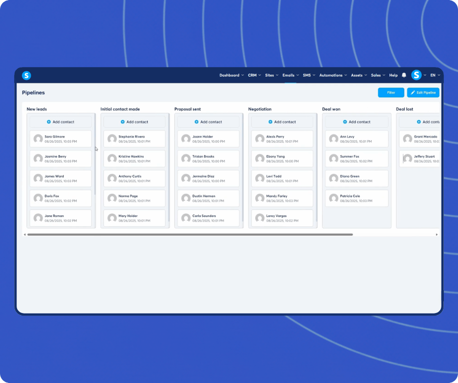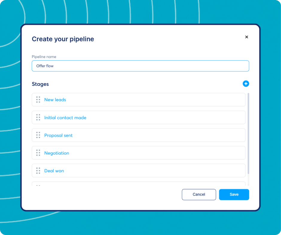Build a sales process that works for you. Add, remove, or rename stages to match your specific workflow, whether you are selling high-ticket coaching or B2B software