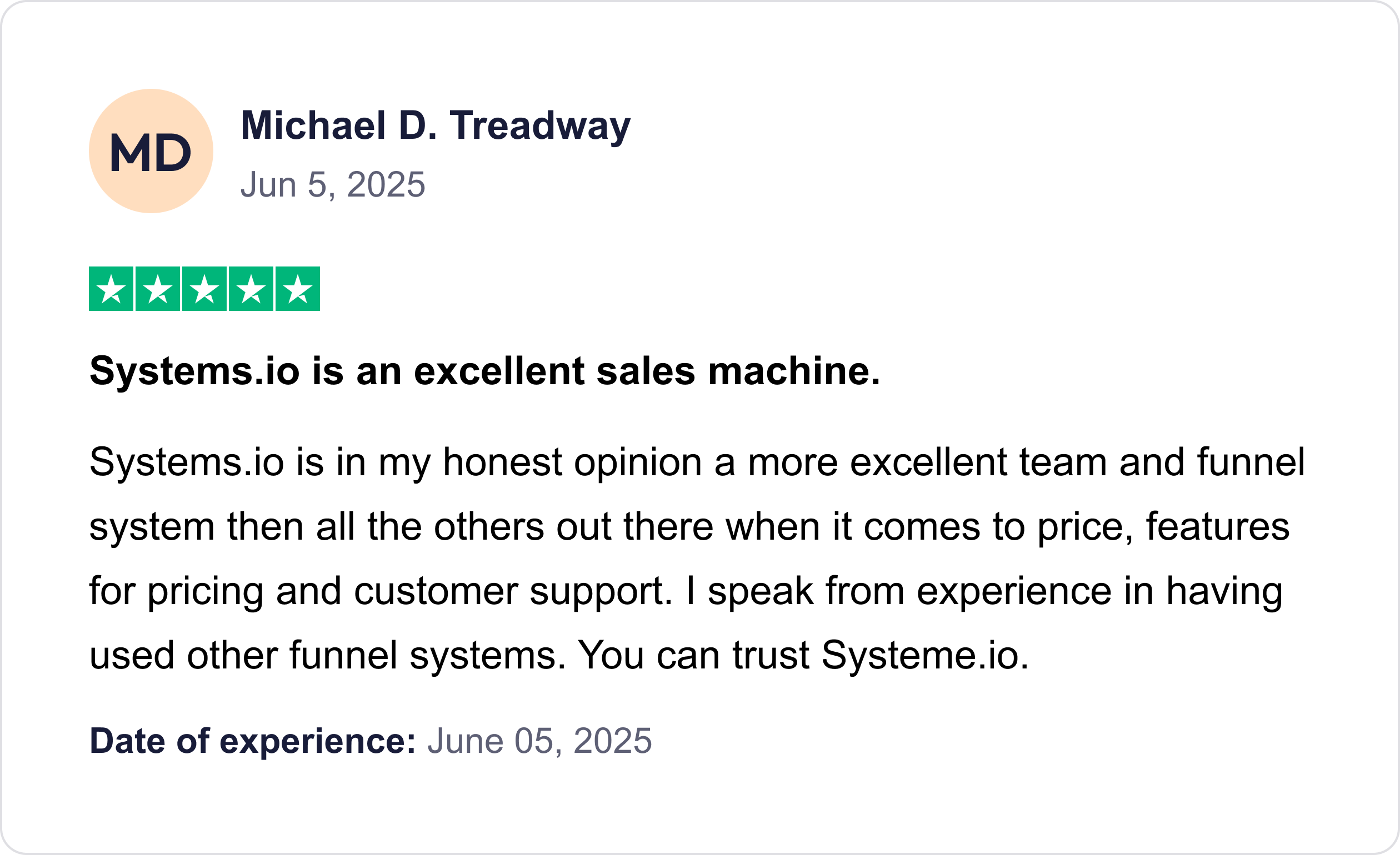 Vi er så overbeviste om, at systeme.io er det bedste værktøj i verden, at vi har gjort det gratis at tilmelde sig og bruge 99 % af vores funktioner så længe, du vil
