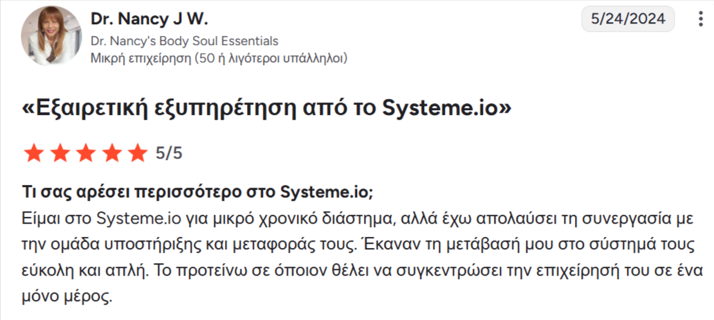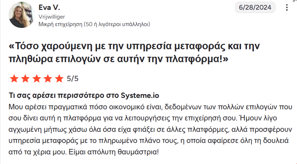 Θα μεταφέρουμε όλα τα προϊόντα, τις σελίδες, τα κανάλια και τους πελάτες σας στο systeme.io χωρίς επιπλέον κόστος! Το μόνο που χρειάζεται να κάνετε είναι να εγγραφείτε στο πρόγραμμα Unlimited ή σε οποιοδήποτε από τα ετήσια προγράμματα μας.