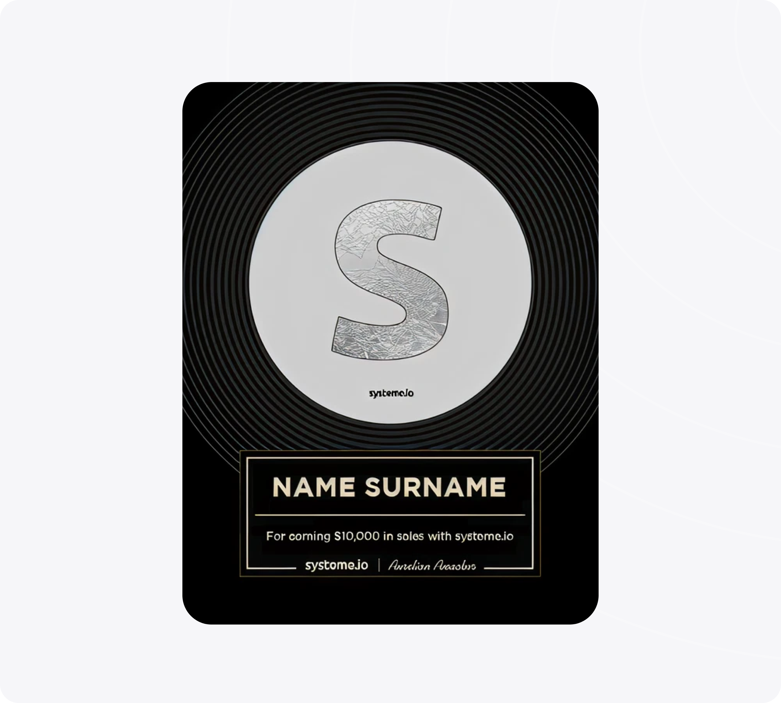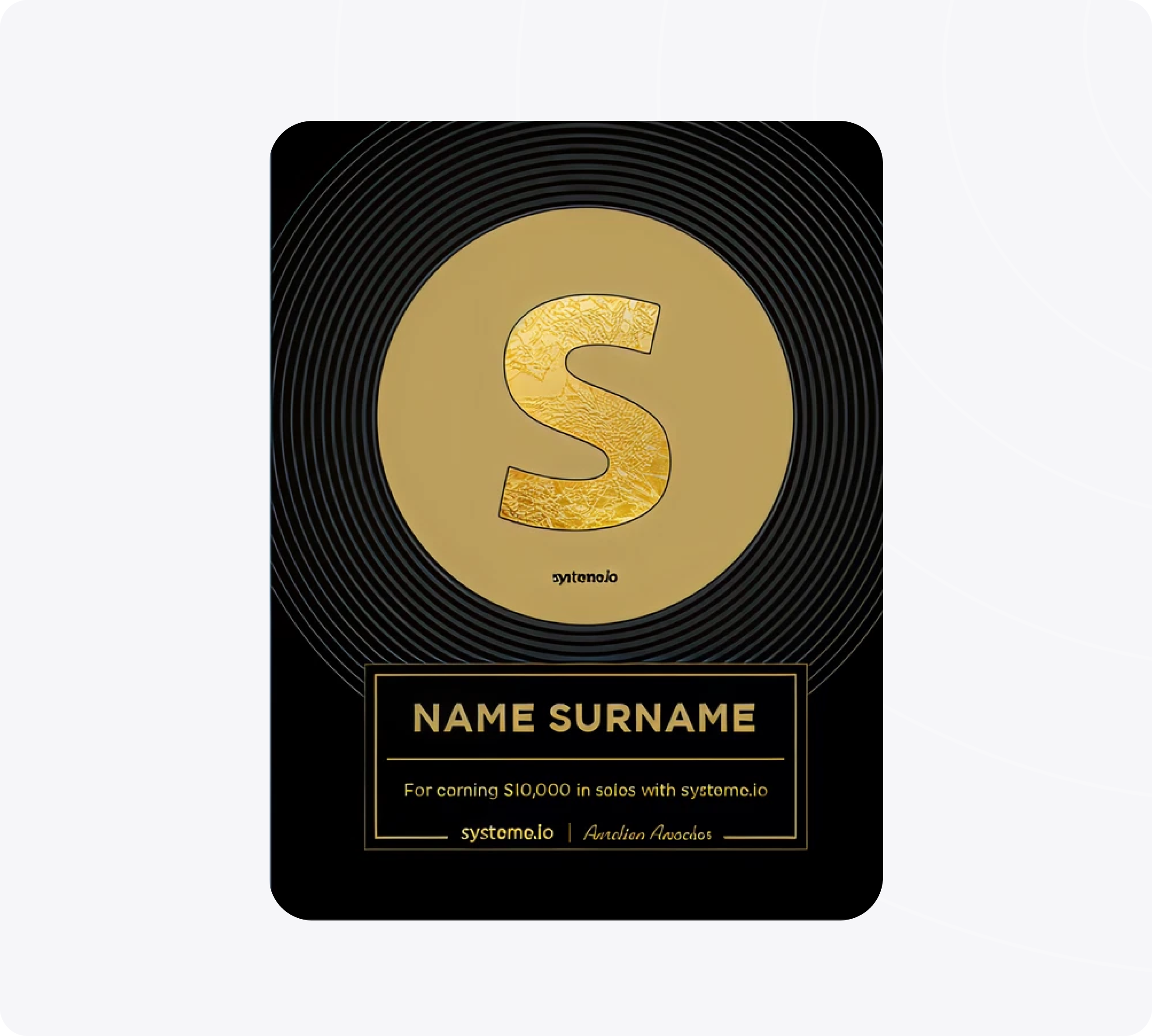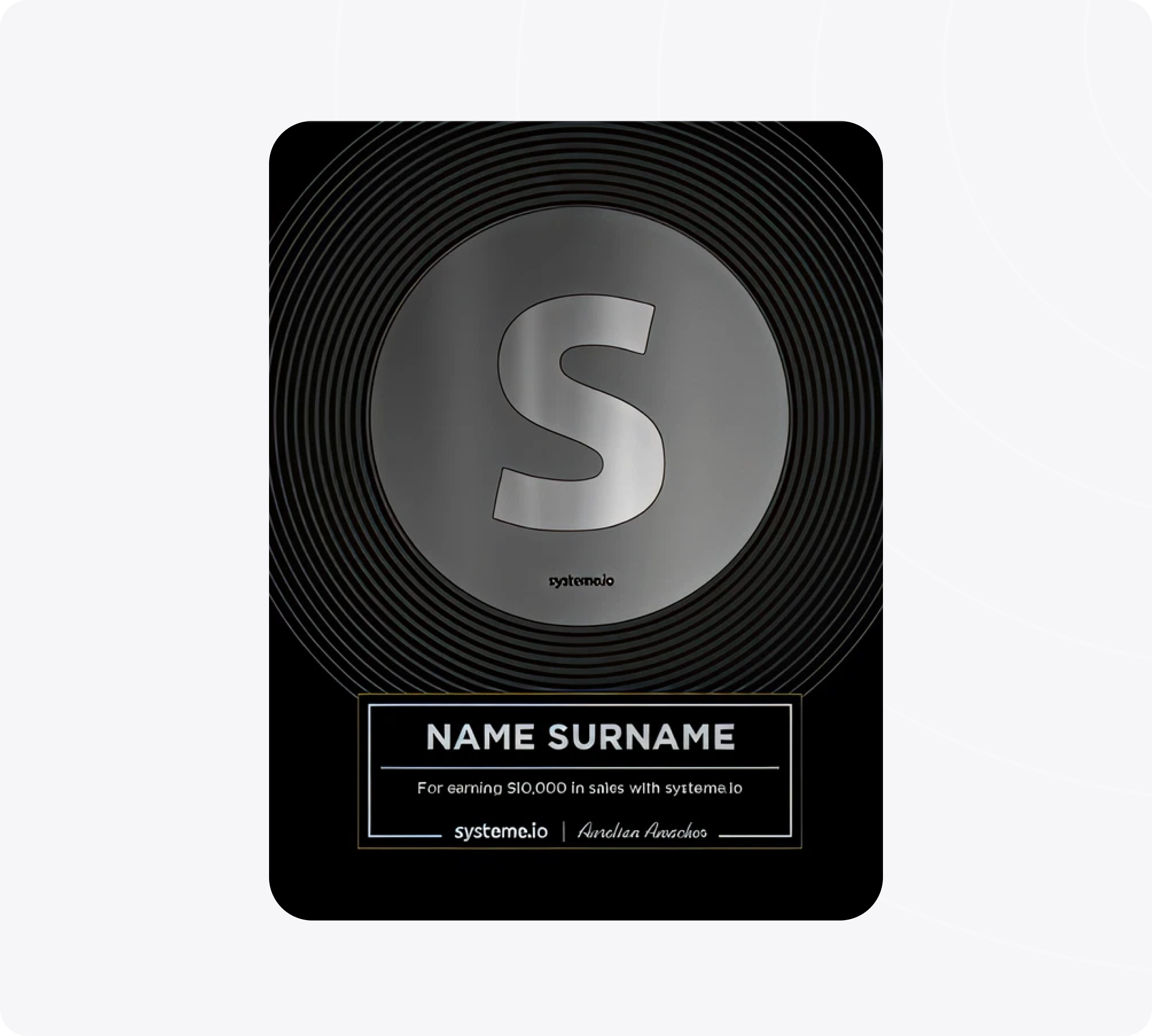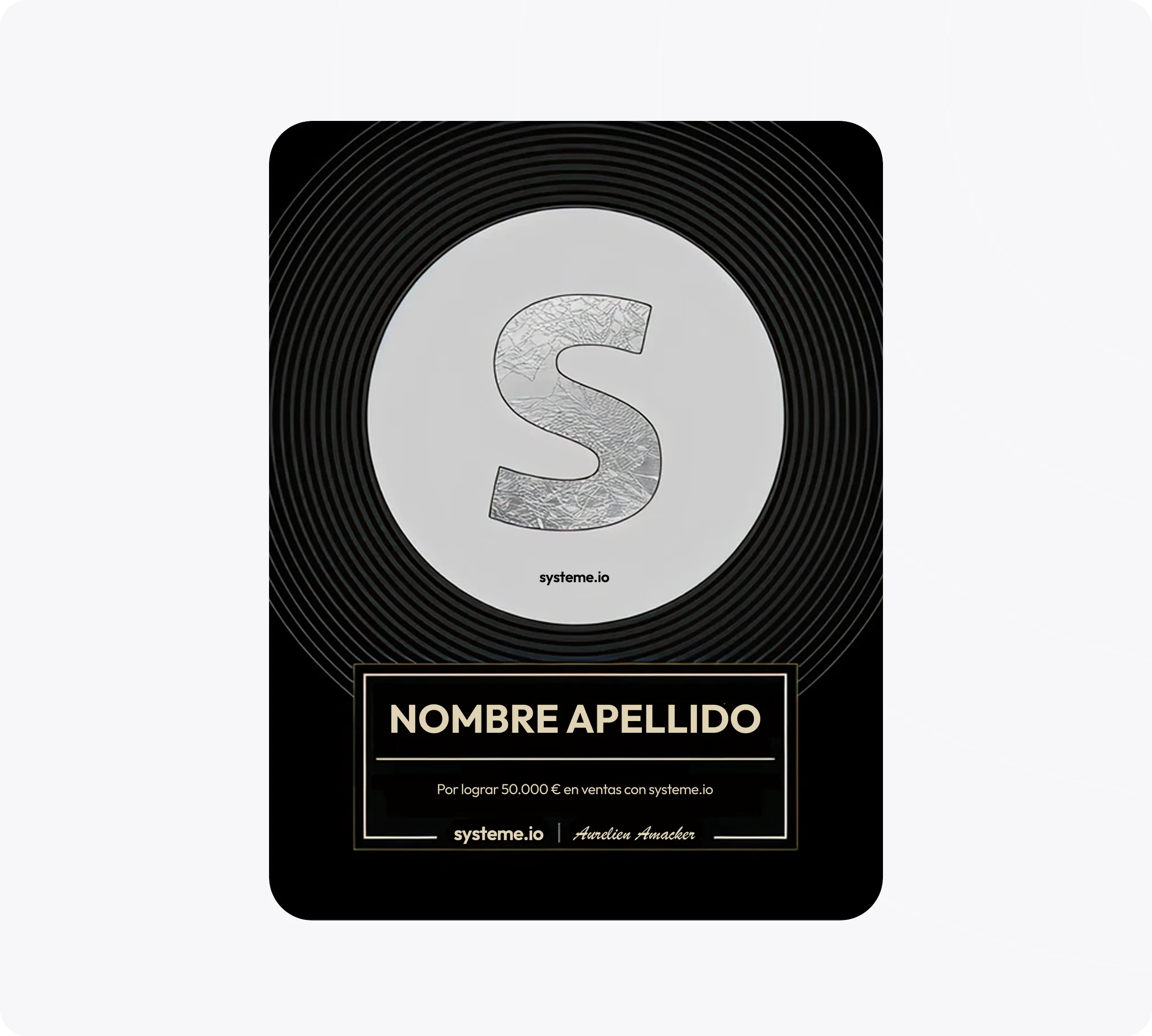 Te enviaremos el premio de systeme.io enmarcado directamente a la puerta de tu casa