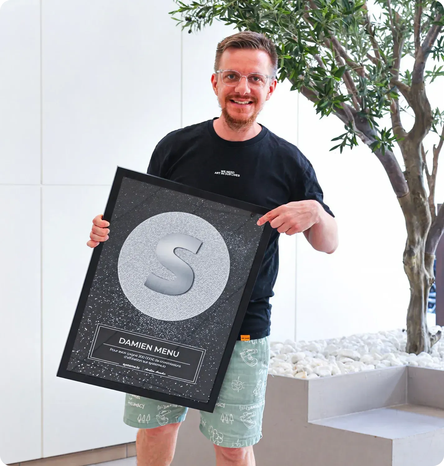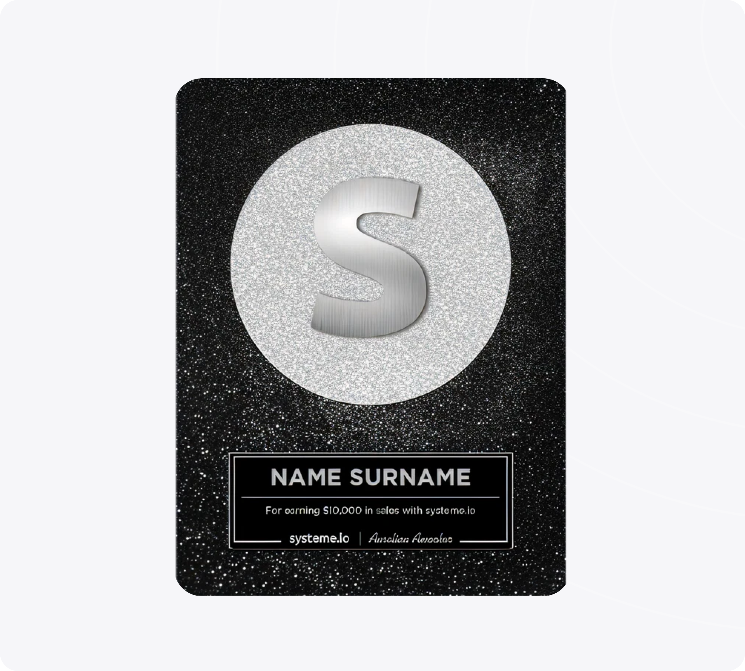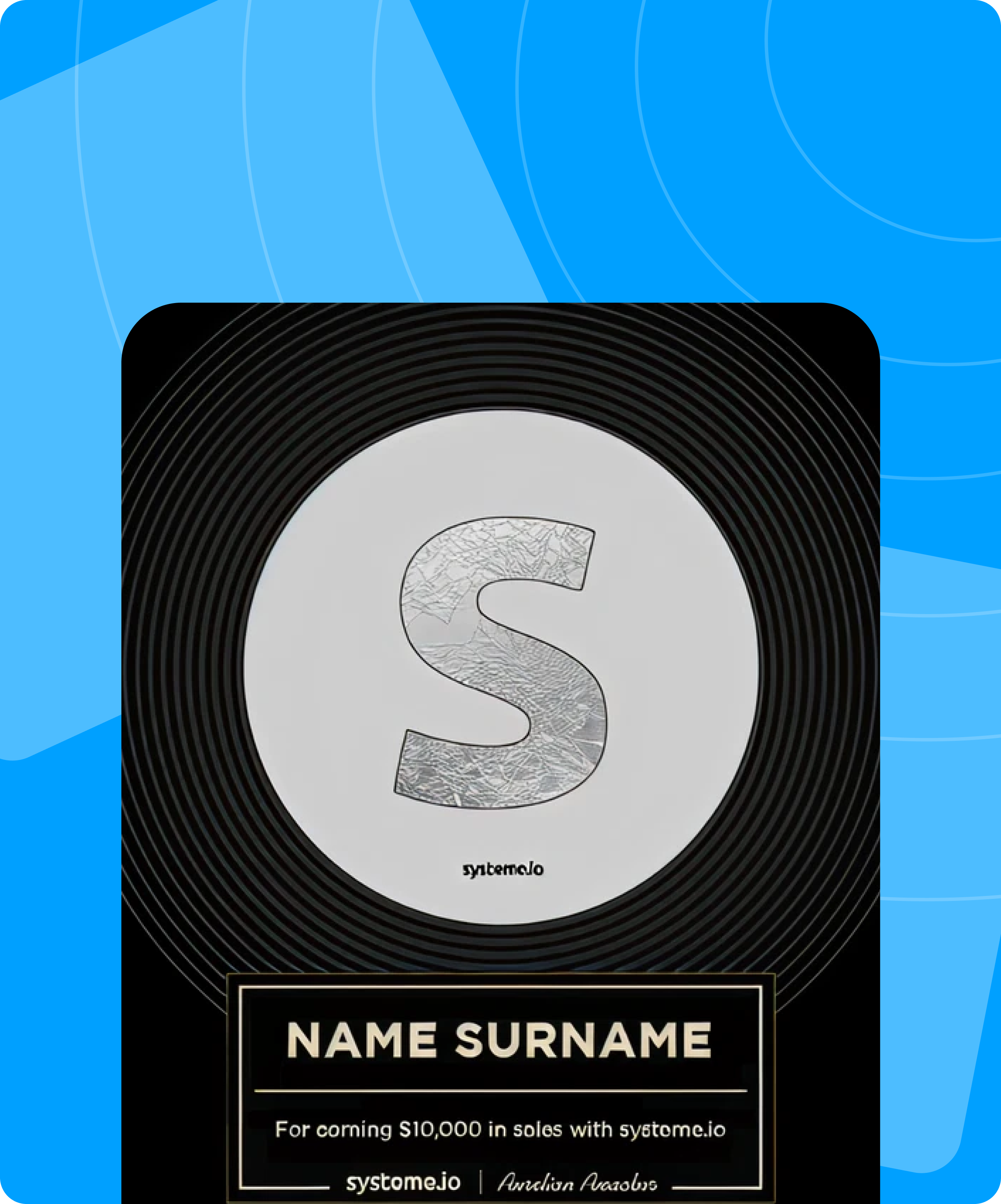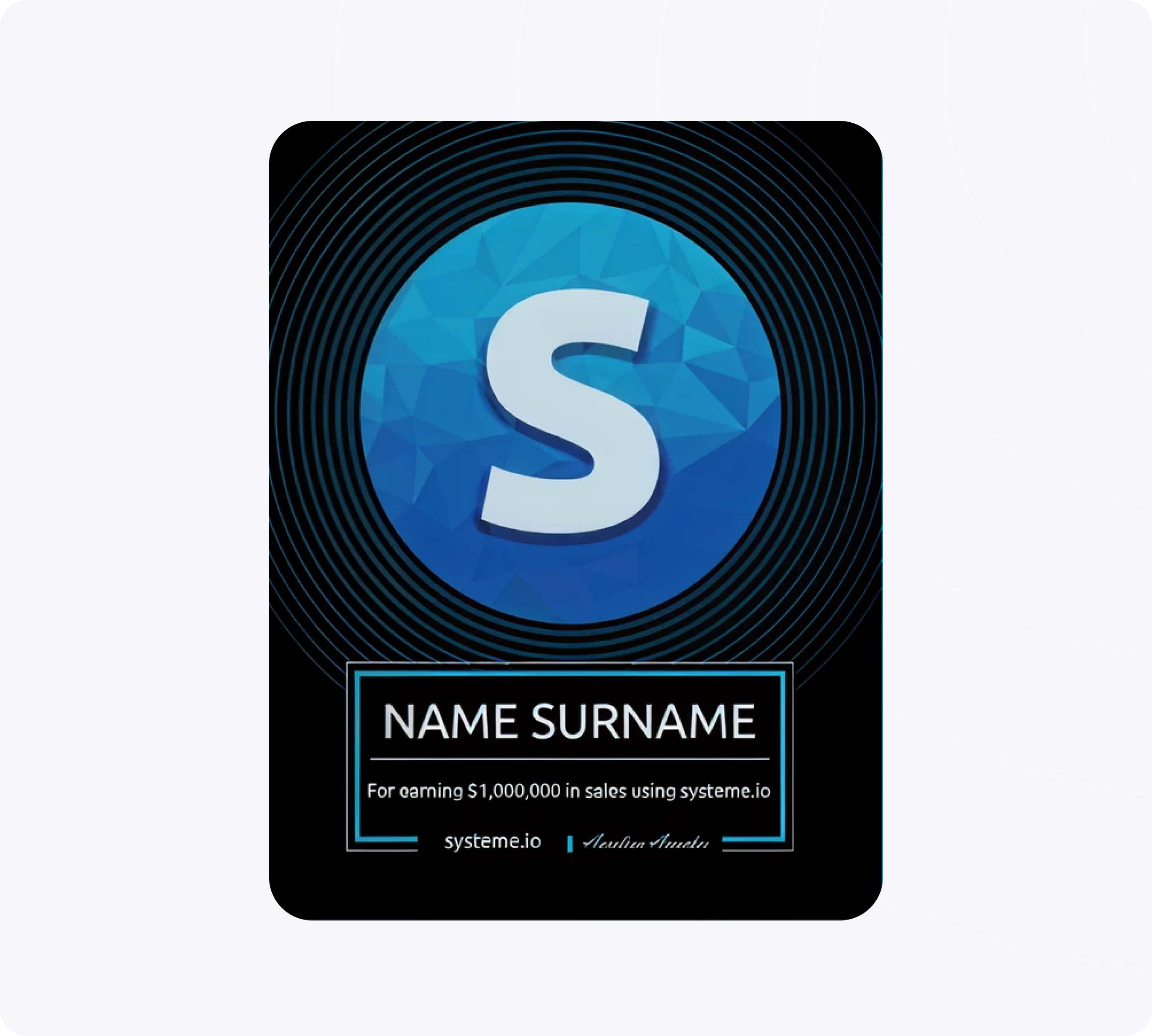 Te enviaremos el premio de systeme.io enmarcado directamente a la puerta de tu casa
