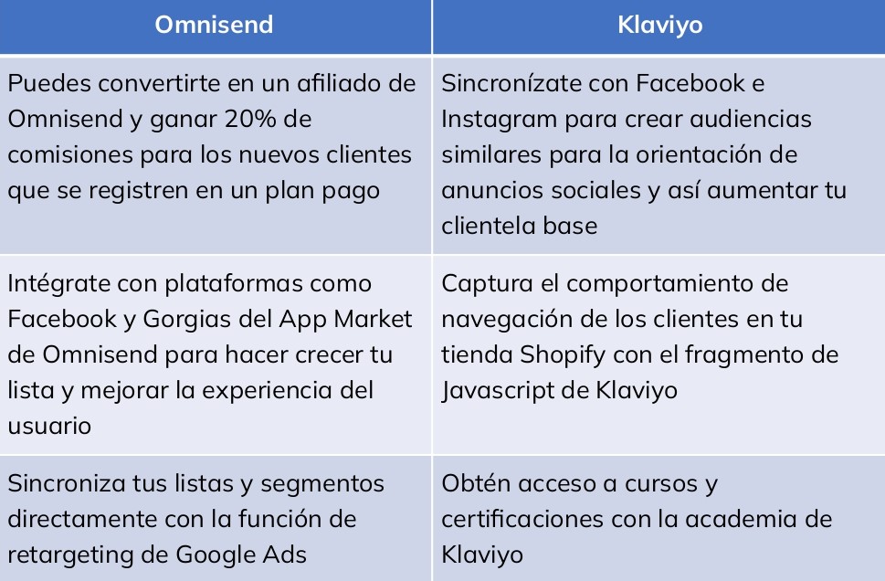 Las herramientas especializadas de email marketing como Omnisend y Klaviyo también tienen fortalezas y debilidades, como lo mencionan sus usuarios.