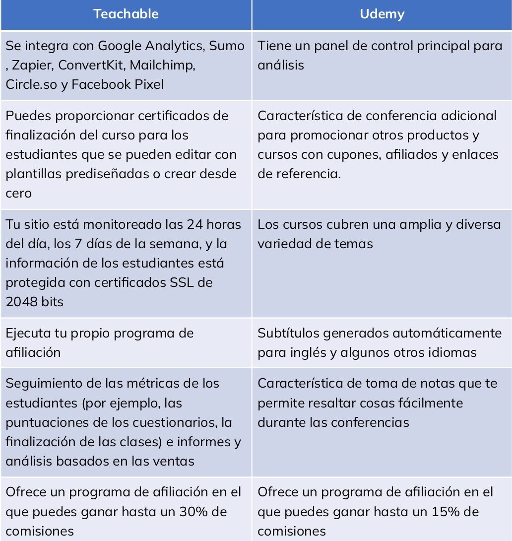 El último es cómo realmente sacas a Teachable y Udemy fuera del juego.