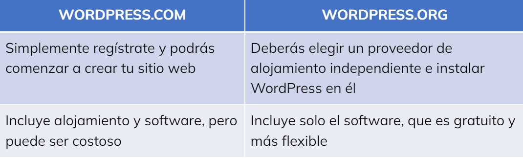 Hay un par de diferencias importantes entre WordPress.com y WordPress.org: