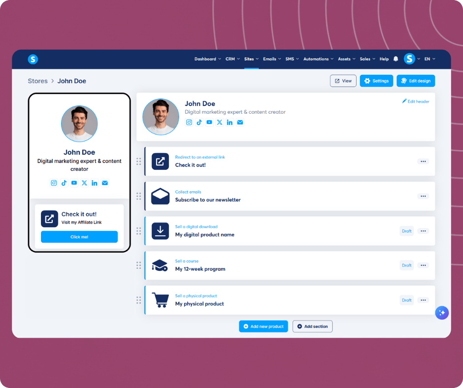 Your store is integrated into your products and funnels, saving you time so that you can monetize your social traffic directly from one page