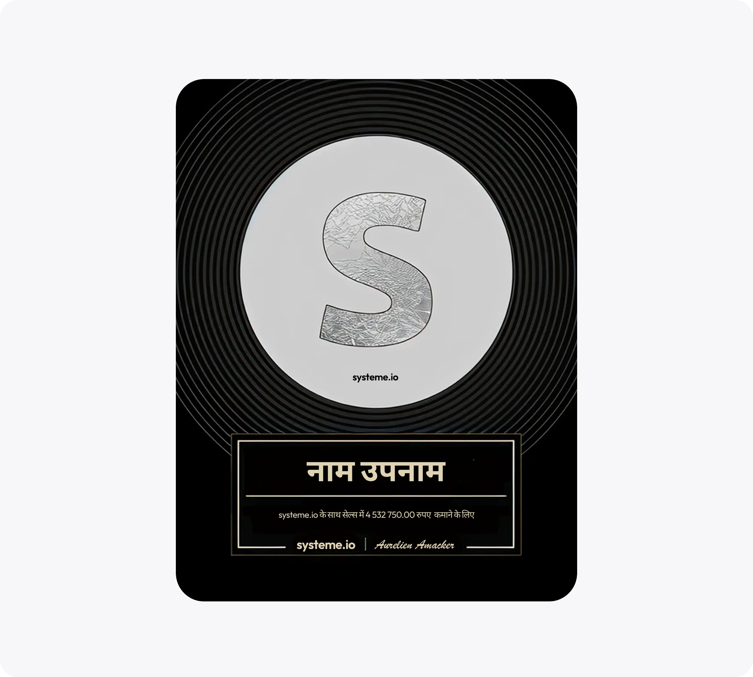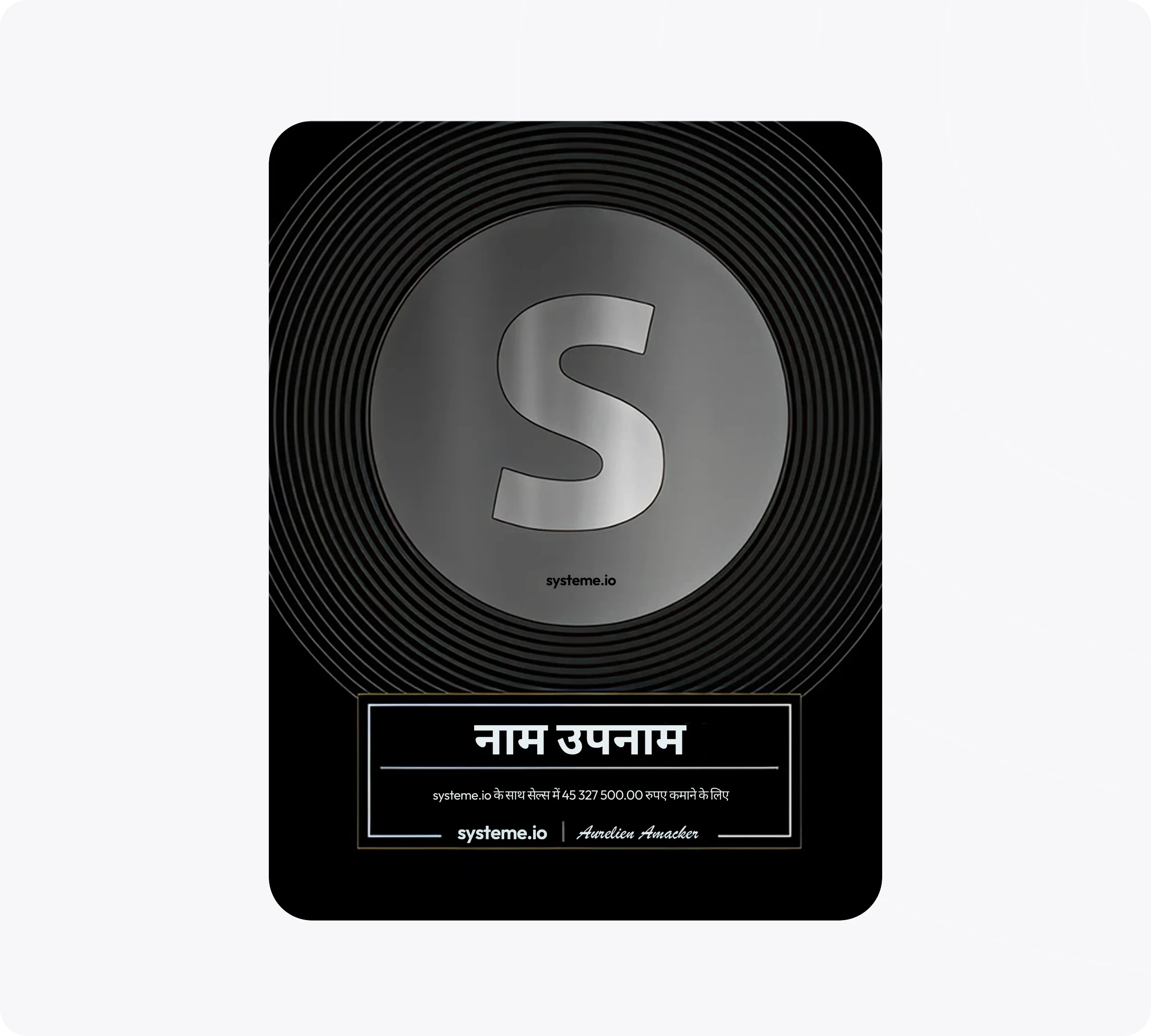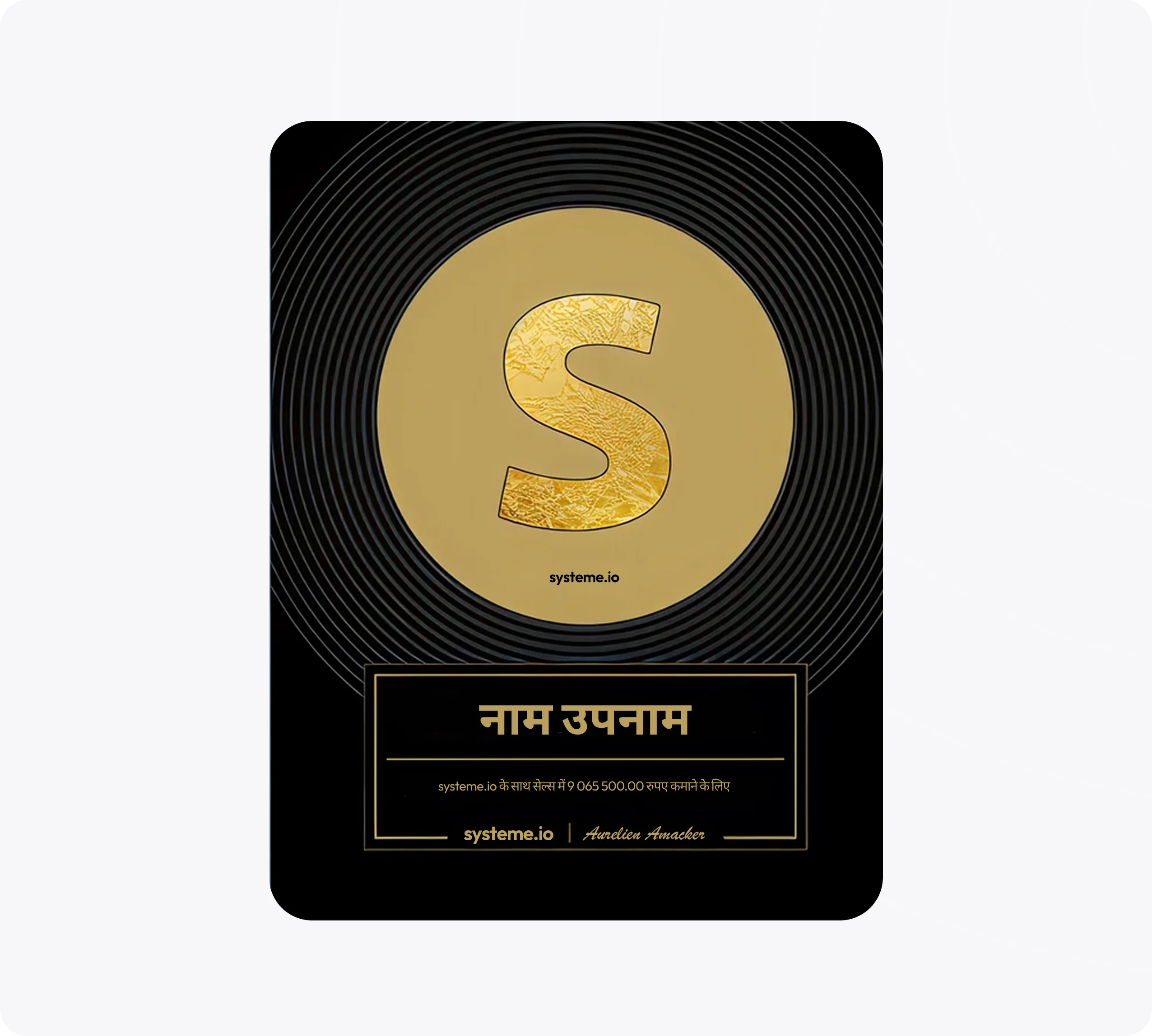 अपने systeme.io खाते से हर बार नई वित्तीय उपलब्धि हासिल करने पर आप एक नया पुरस्कार पाने के योग्य बन जाते हैं!