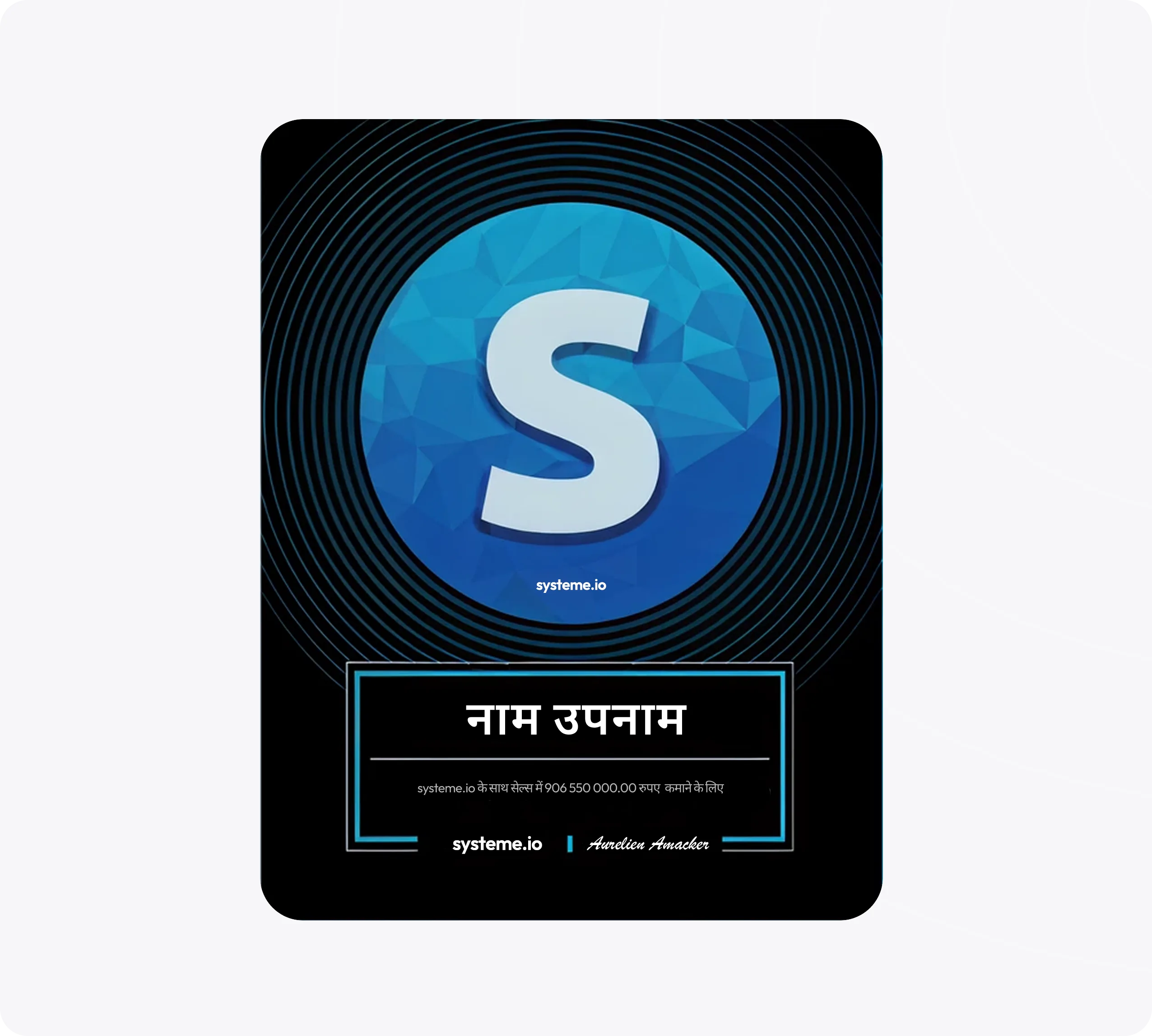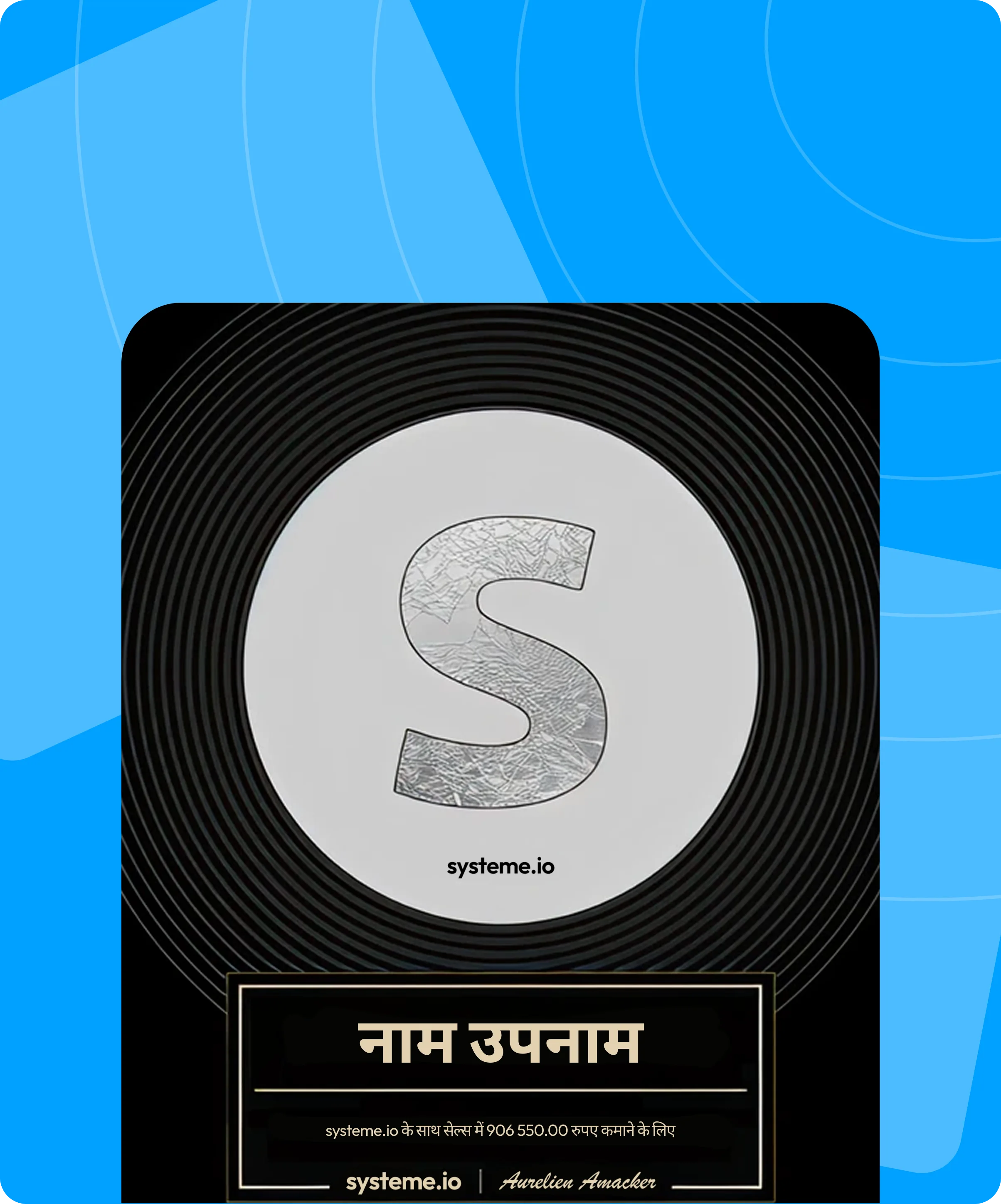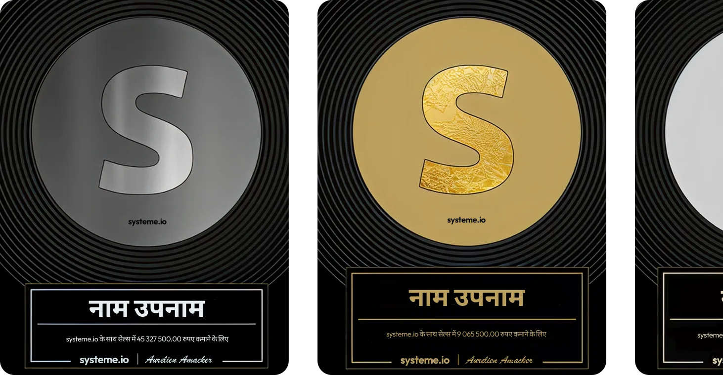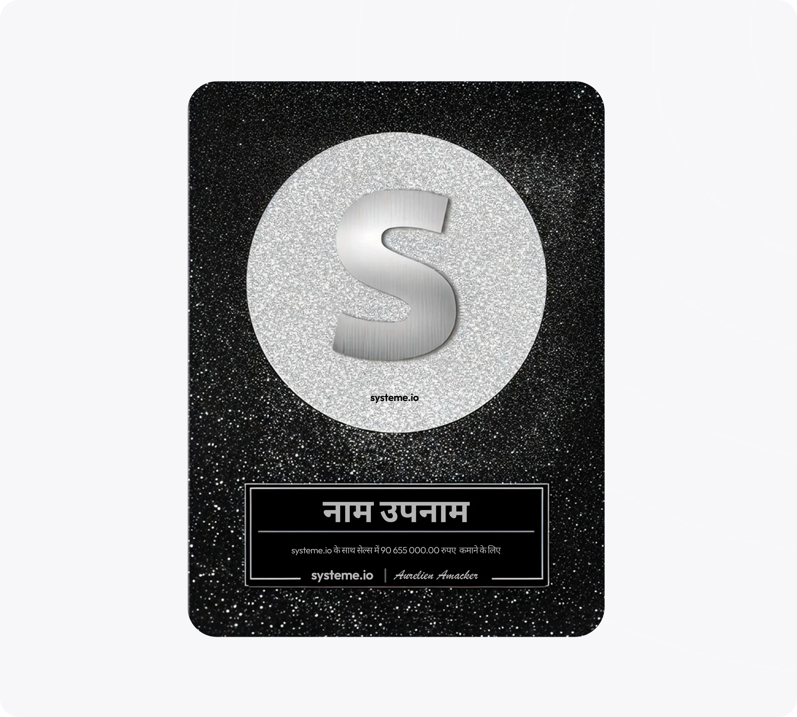 अपने systeme.io खाते से हर बार नई वित्तीय उपलब्धि हासिल करने पर आप एक नया पुरस्कार पाने के योग्य बन जाते हैं!