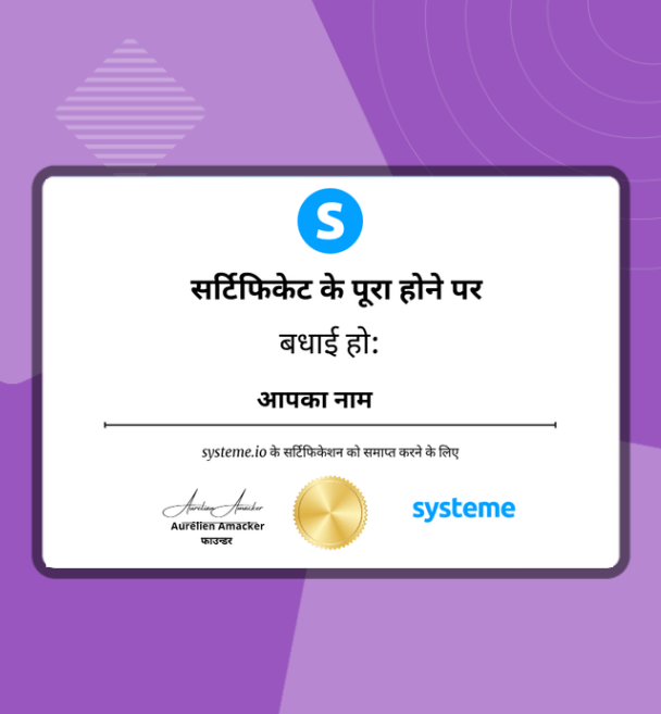 हमारे मुफ्त वीडियो सर्टिफिकेशन कोर्स के साथ systeme.io एक्सपर्ट बनें और अपनी सफलता को तेज़ी से बढ़ाएँ!