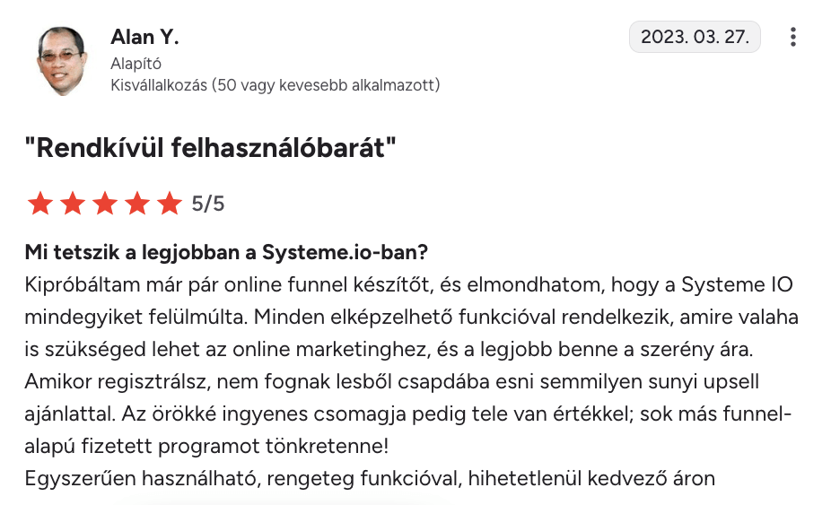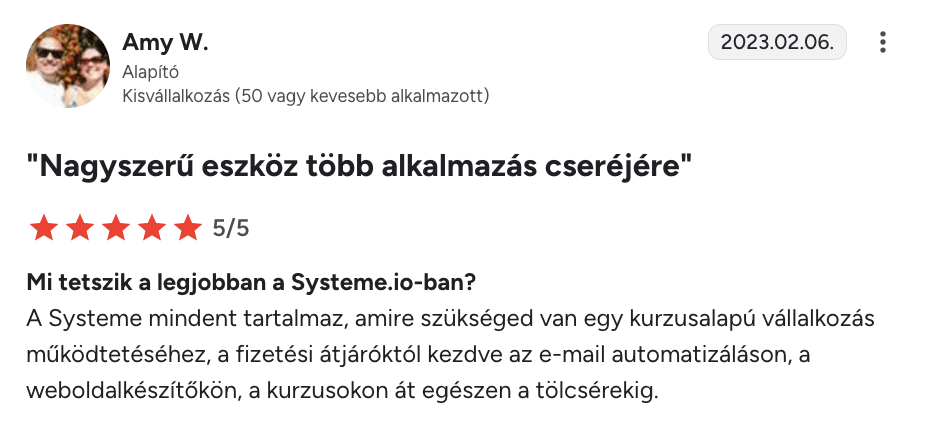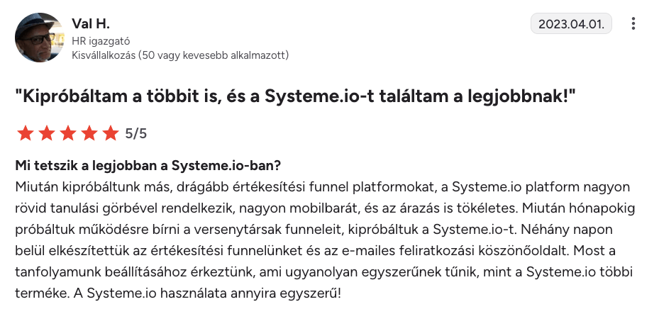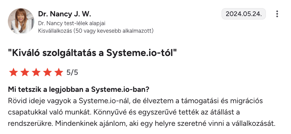 “Systeme.io – öt csillag $$$$$$”