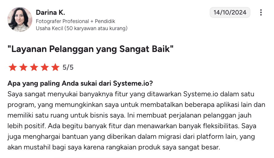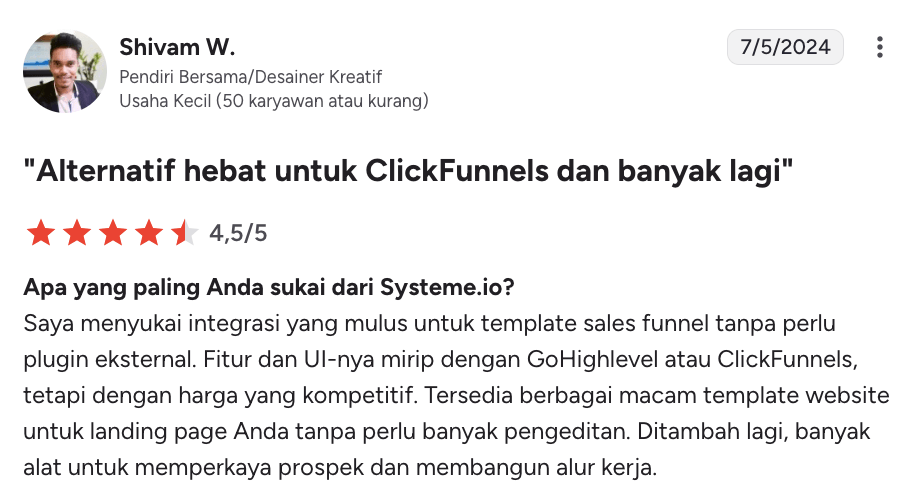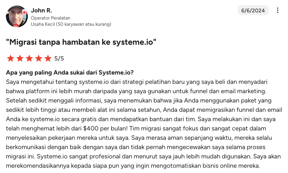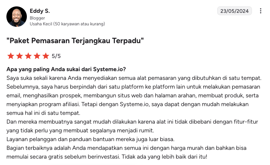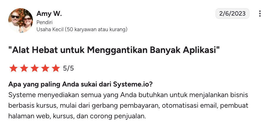 “Systeme.io mendapatkan lima bintang $$$$$$”