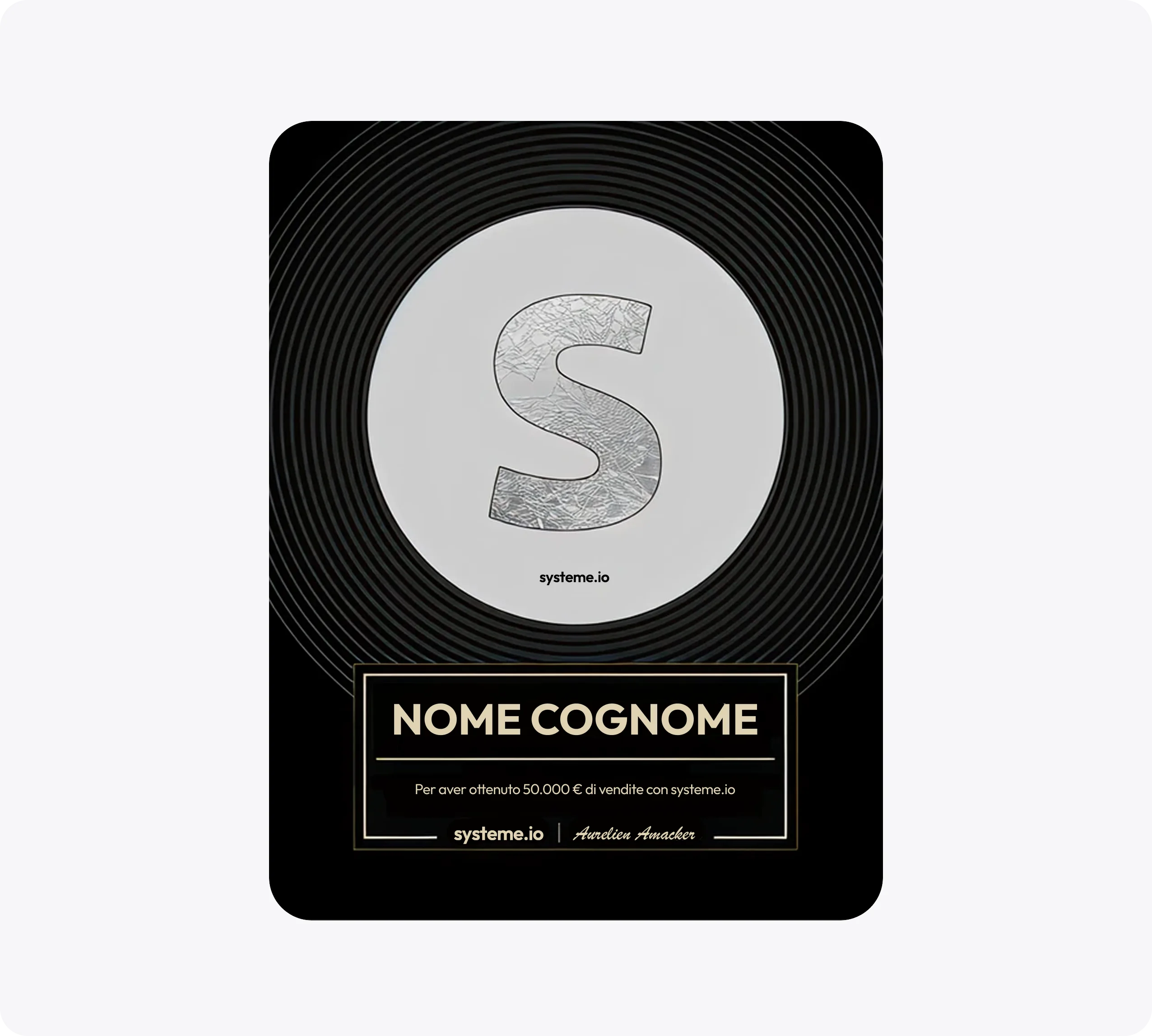Ti spediremo il premio systeme.io incorniciato direttamente a casa tua!