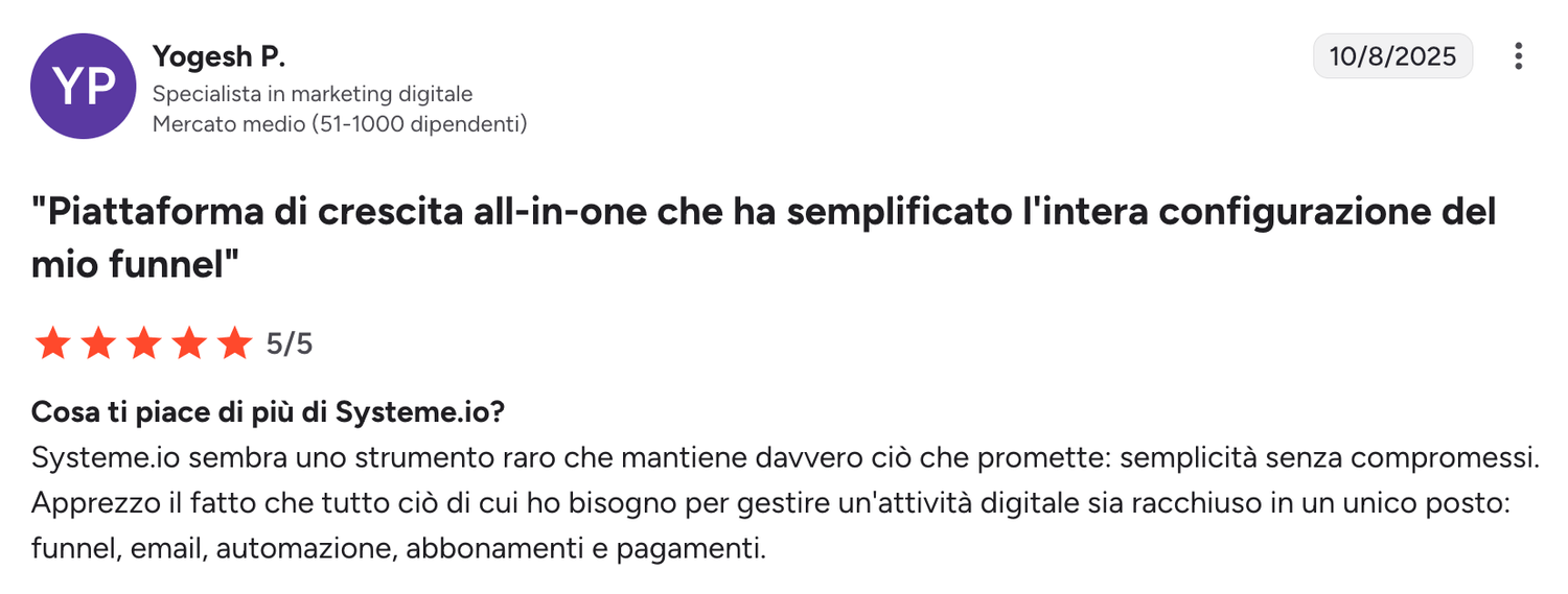 Systeme.io ha aiutato migliaia di imprenditori ad avviare la propria attività grazie a una piattaforma facile da usare e che include tutti gli strumenti necessari - tutto nello stesso posto.