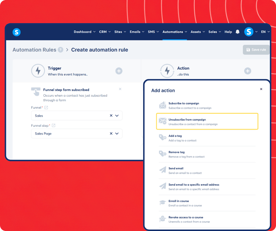 Automatically grant course access and remove customers from your sales email sequences immediately after purchase without lifting a finger