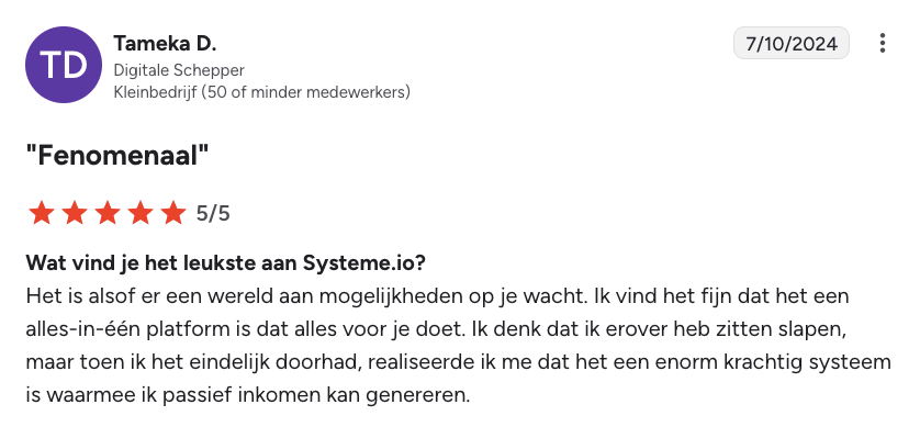 Systeme.io heeft duizenden ondernemers geholpen hun bedrijf een kickstart te geven met een platform dat eenvoudig te gebruiken is en alle tools bevat die je nodig hebt - allemaal op één plek.