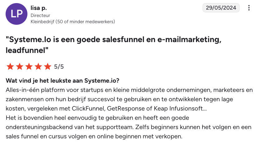 Systeme.io heeft duizenden ondernemers geholpen hun bedrijf een kickstart te geven met een platform dat eenvoudig te gebruiken is en alle tools bevat die je nodig hebt - allemaal op één plek.