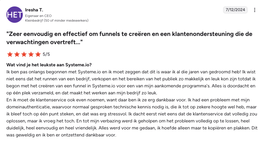 Heb je een website, blog, verkoopfunnels en online cursussen op een professioneel webadres zoals www.jouwdomein.com. Dit vervangt het standaard systeme.io subdomein en geeft je merk direct meer geloofwaardigheid en een professionele online uitstraling