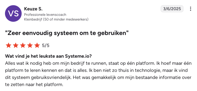 Systeme.io heeft duizenden ondernemers geholpen hun bedrijf een kickstart te geven met een platform dat eenvoudig te gebruiken is en alle tools bevat die je nodig hebt - allemaal op één plek.