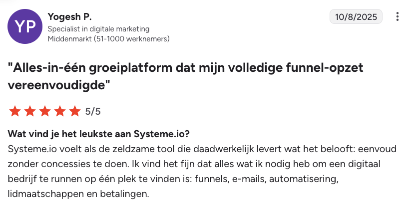 Systeme.io heeft duizenden ondernemers geholpen hun bedrijf een kickstart te geven met een platform dat eenvoudig te gebruiken is en alle tools bevat die je nodig hebt - allemaal op één plek