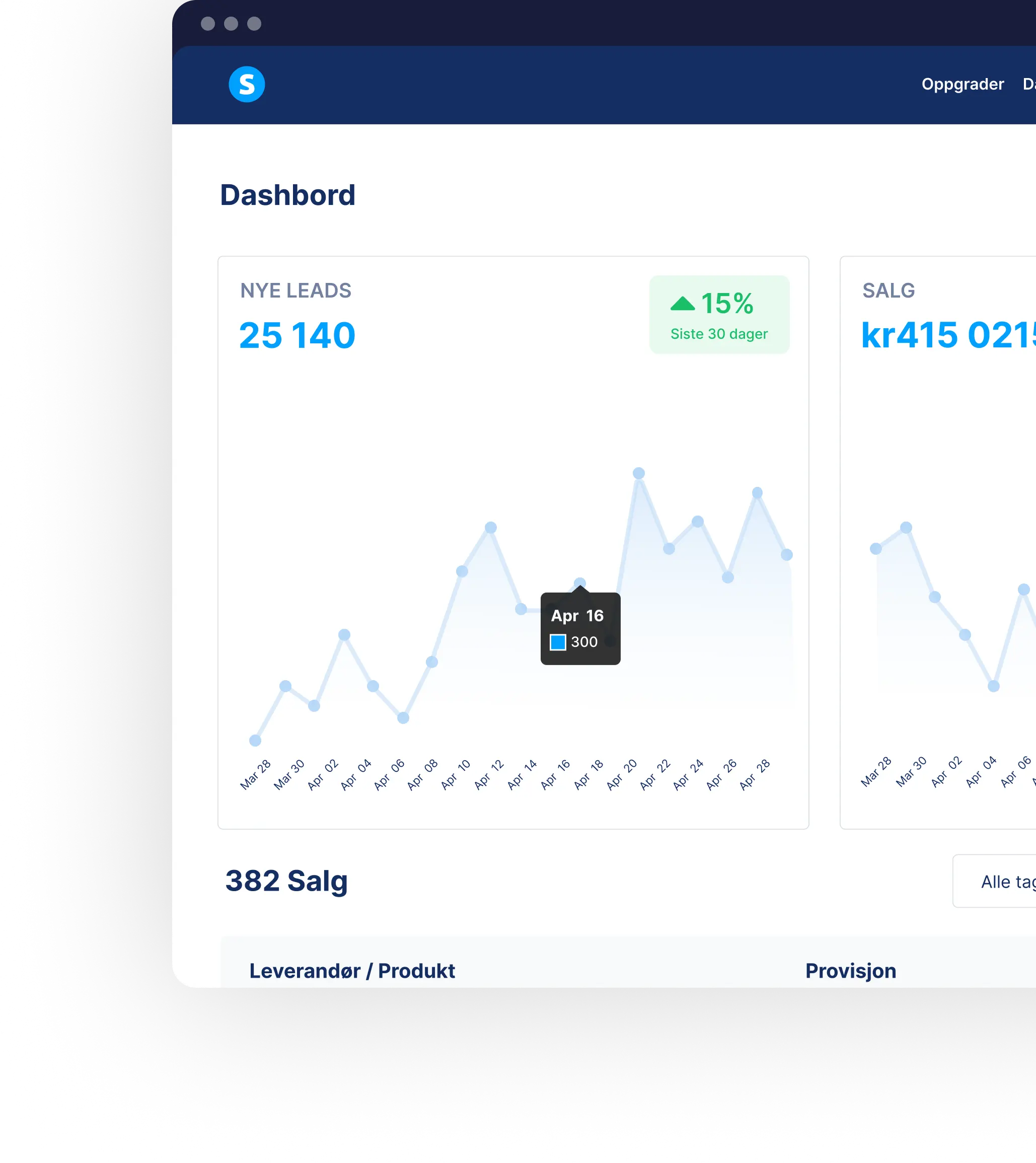 Bygg en hær av affiliates som selger for deg. Administrer affiliate-lenker og utbetalinger på ett og samme sted