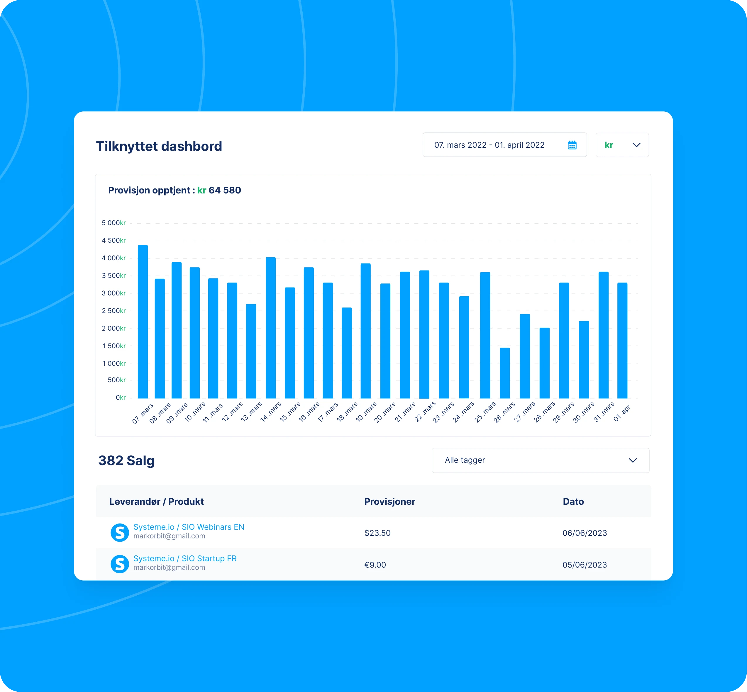 Lag et affiliateprogram og automatiser utbetalinger til partnere.