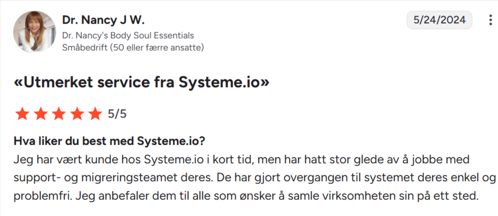 «Systeme.io får fem stjerner $$$$$$»