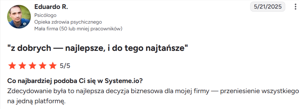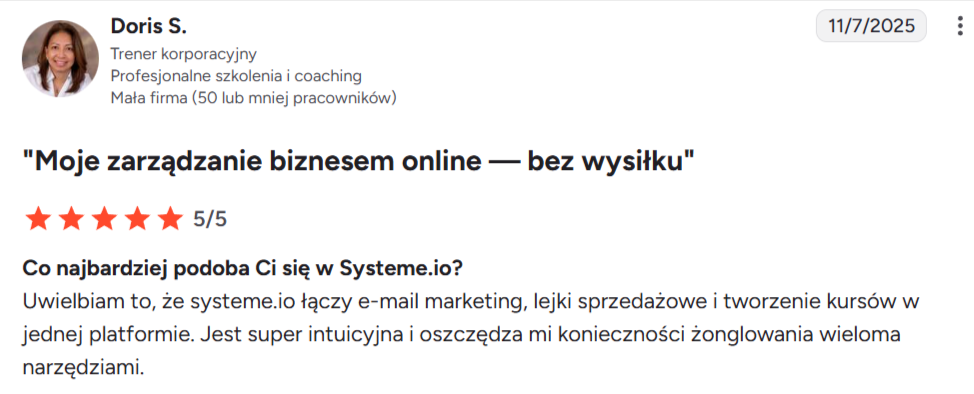 Systeme.io pomogło tysiącom przedsiębiorców rozpocząć działalność dzięki łatwej w obsłudze platformie, która zawiera wszystkie potrzebne narzędzia – wszystko w jednym miejscu.
