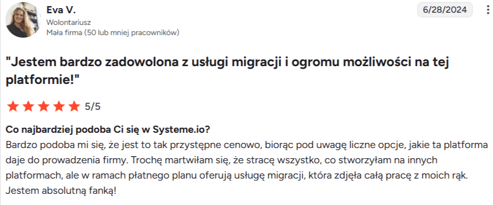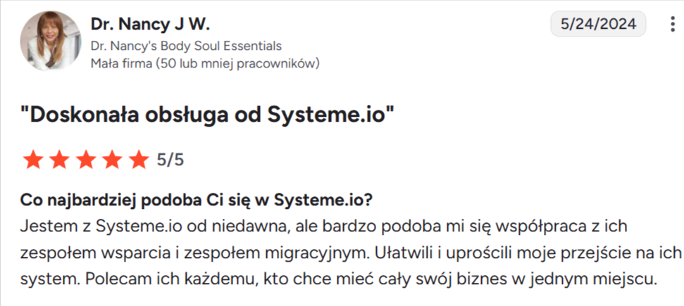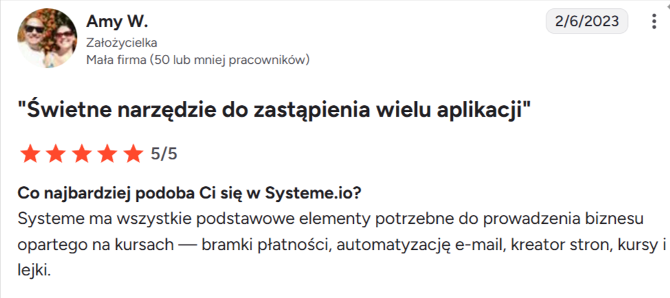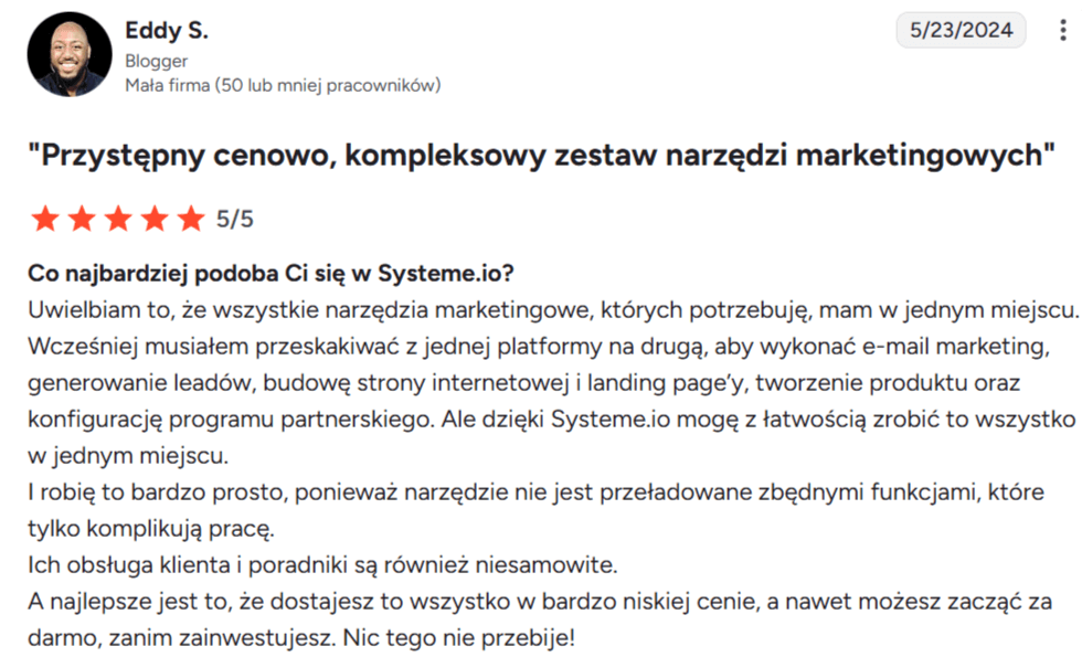 “Systeme.io zasługuje na pięć gwiazdek $$$$$$”