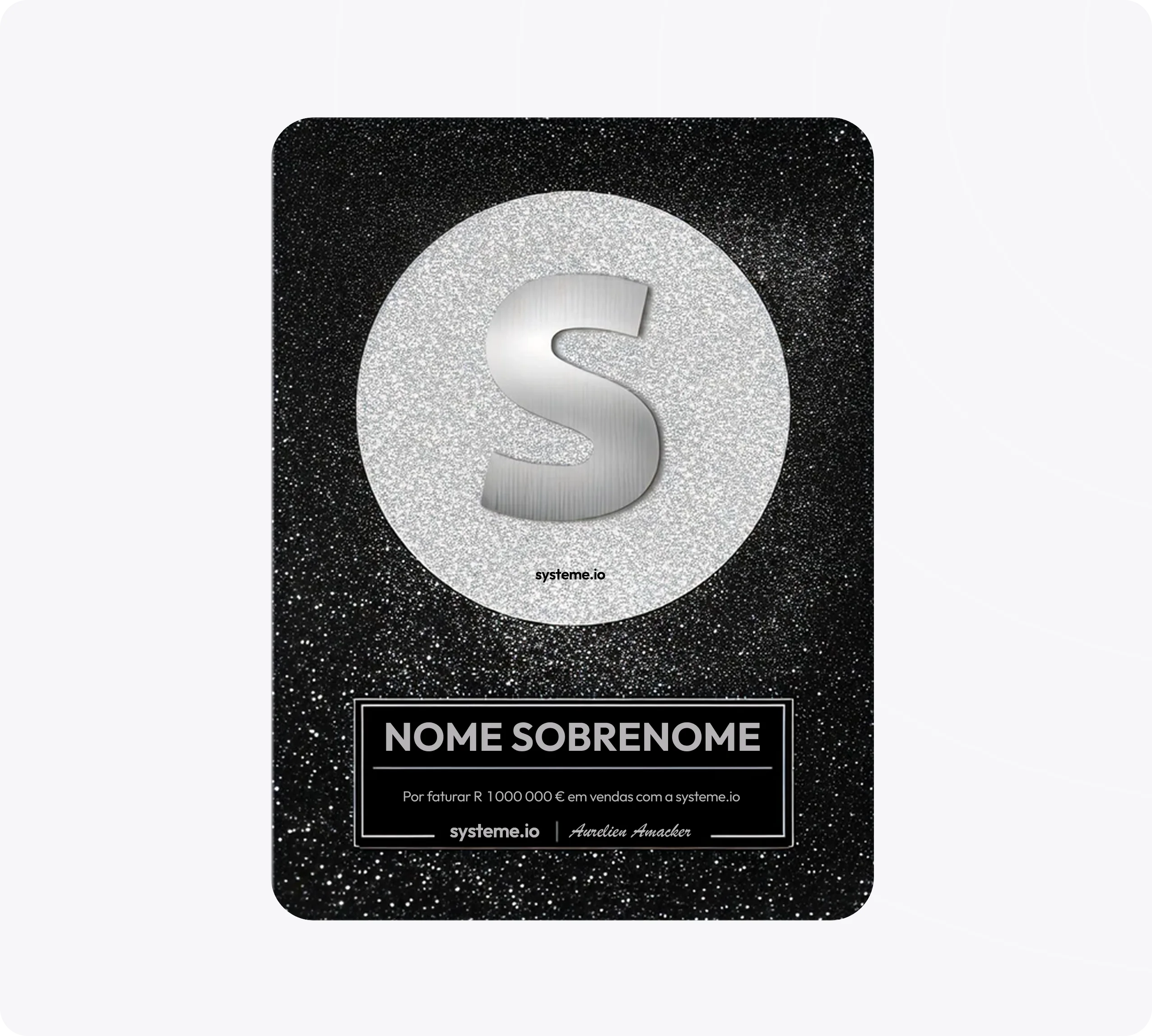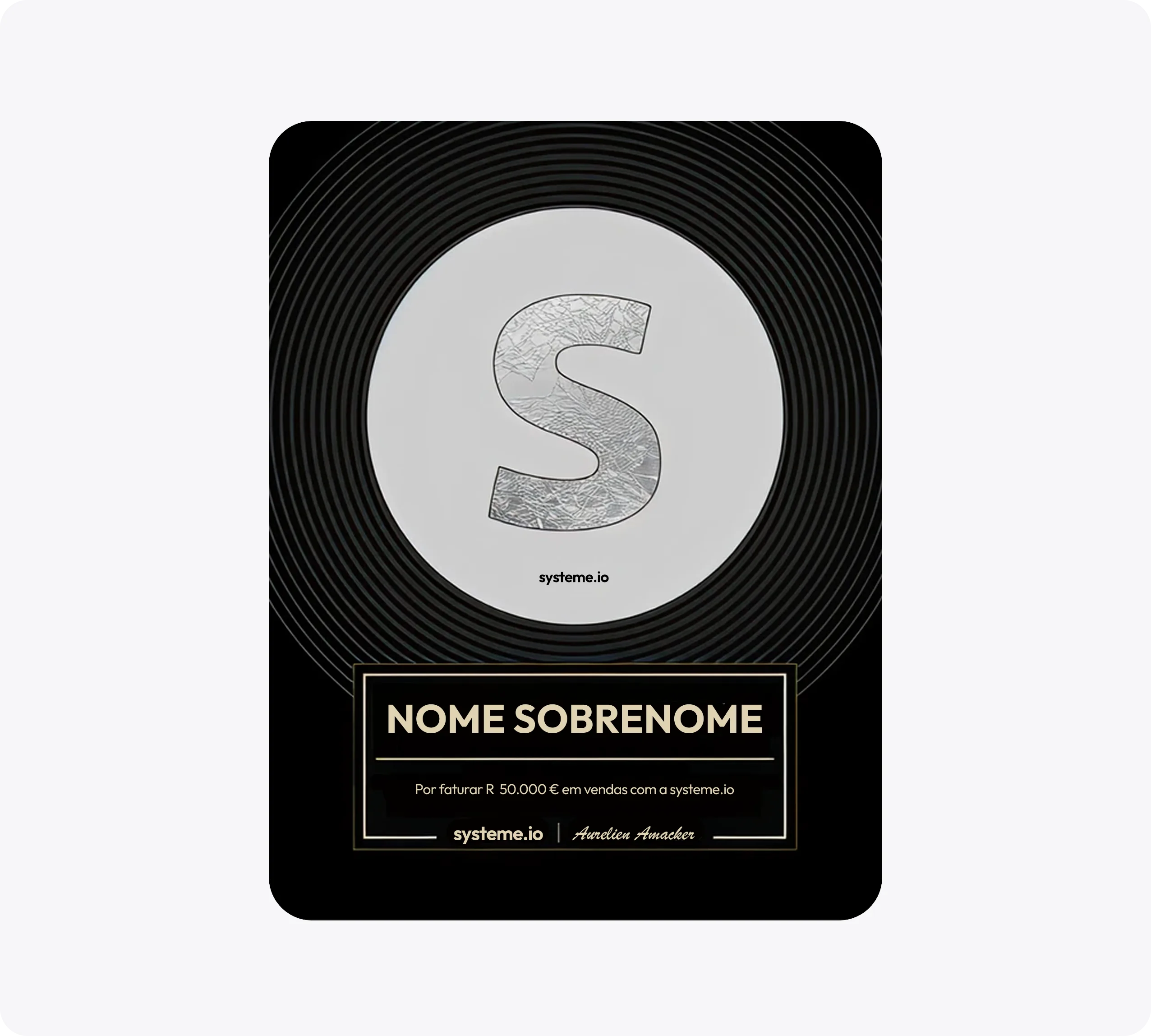 Você se qualifica para uma nova premiação sempre que alcança um novo marco financeiro com a sua conta da systeme.io!