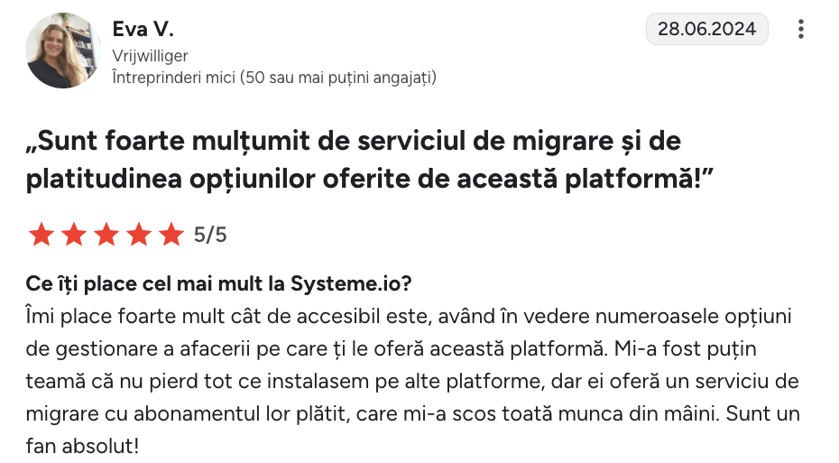 Vom muta toate produsele, paginile, funnel-urile și clienții dumneavoastră pe systeme.io fără costuri suplimentare! Tot ce trebuie să faceți este să vă înscrieți la planul nostru Unlimited sau la oricare dintre planurile noastre anuale