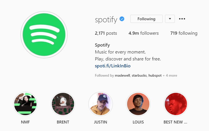 Spotify сохраняет свою биографию в Instagram простой и понятной.