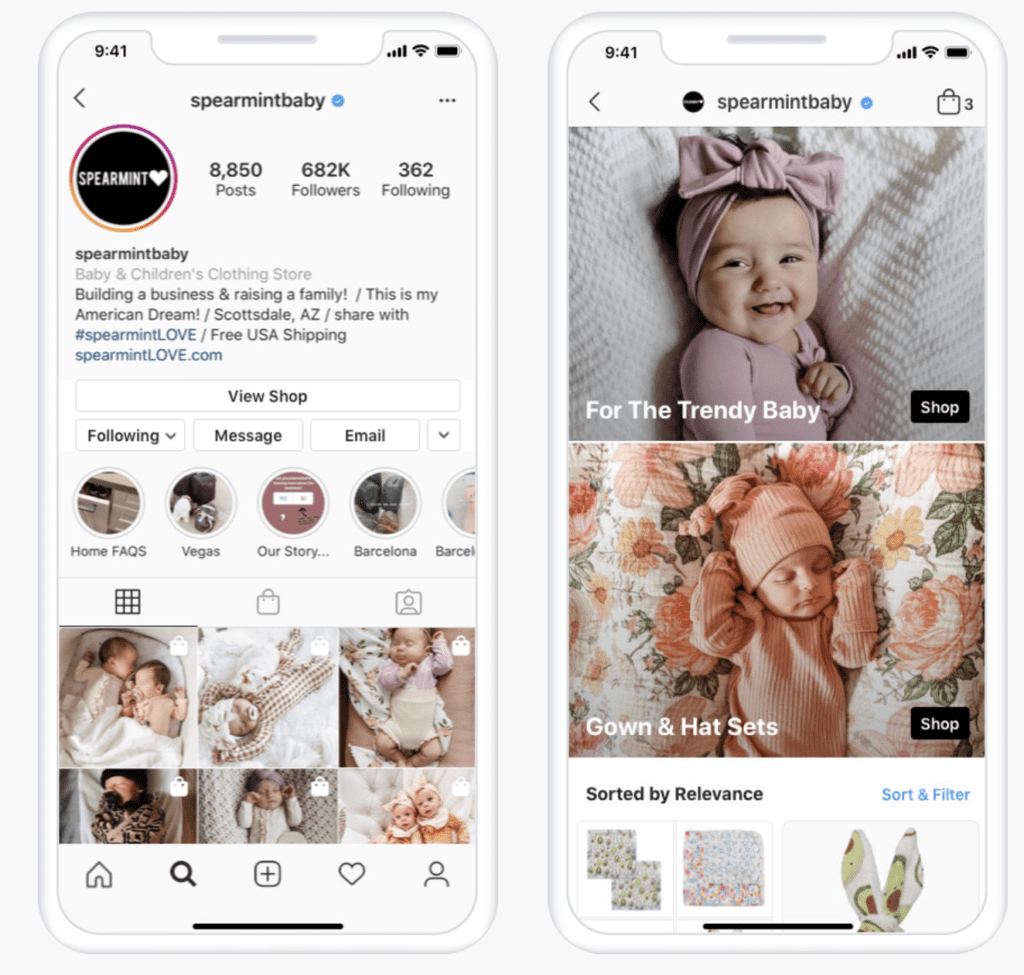 Spearmintbaby создал кнопку действия "View Shop", которая побуждает людей нажать на нее, и тогда они мгновенно просматривают их продукцию.
