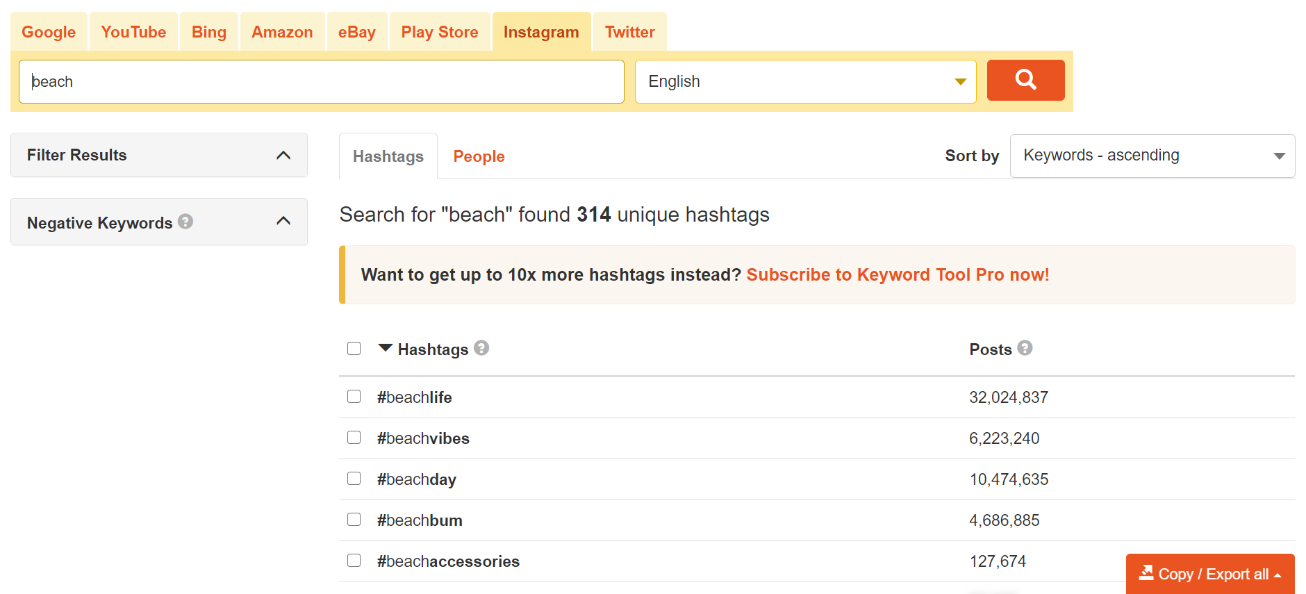 Существуют ресурсы, которые помогут вам выбрать идеальный хэштег, например, Keyword Tool