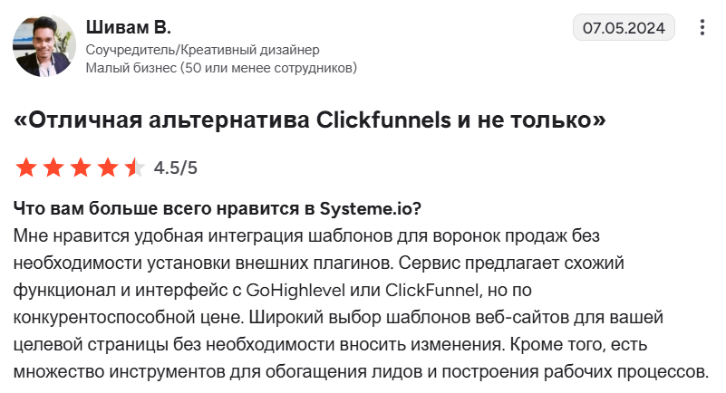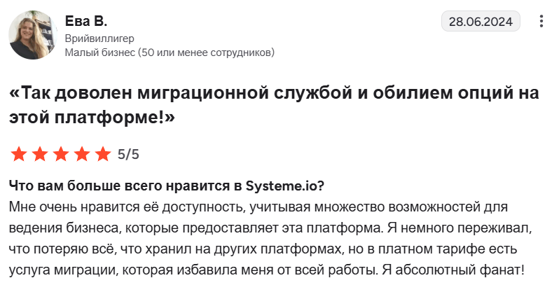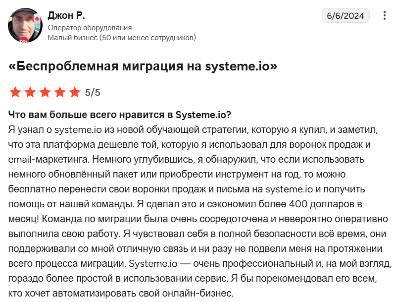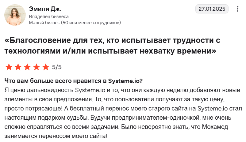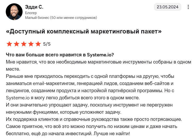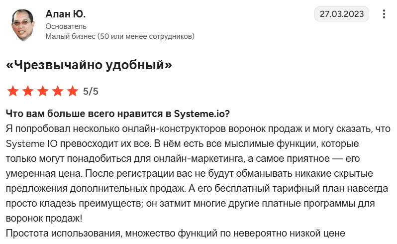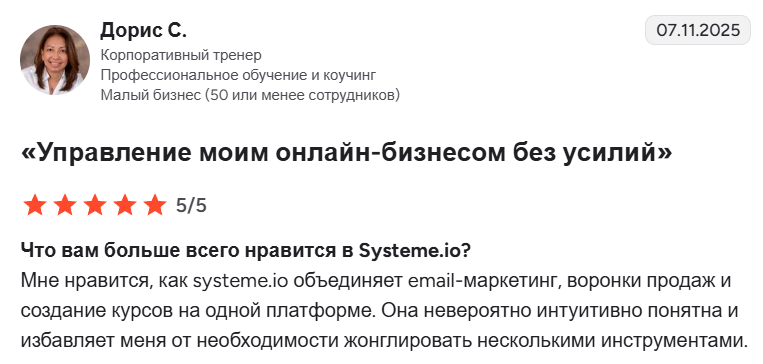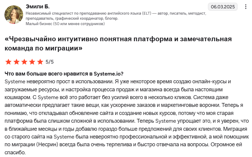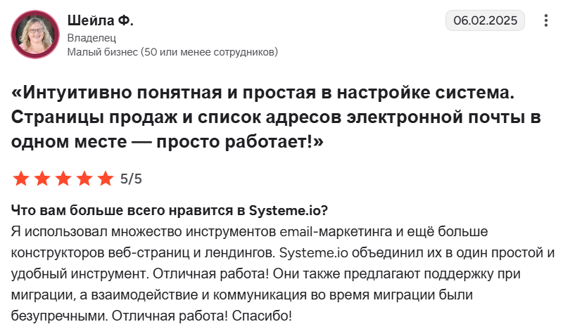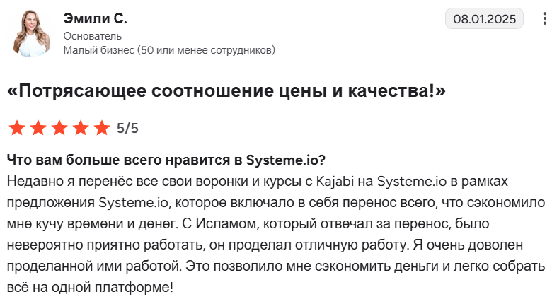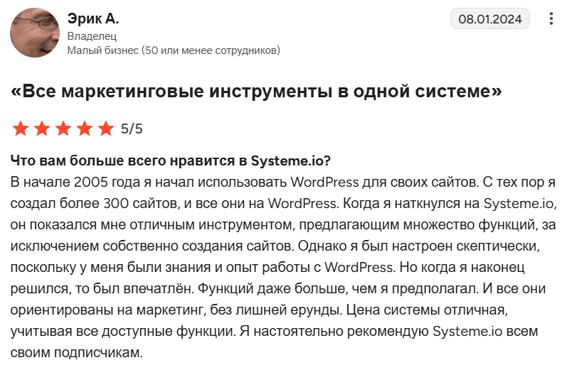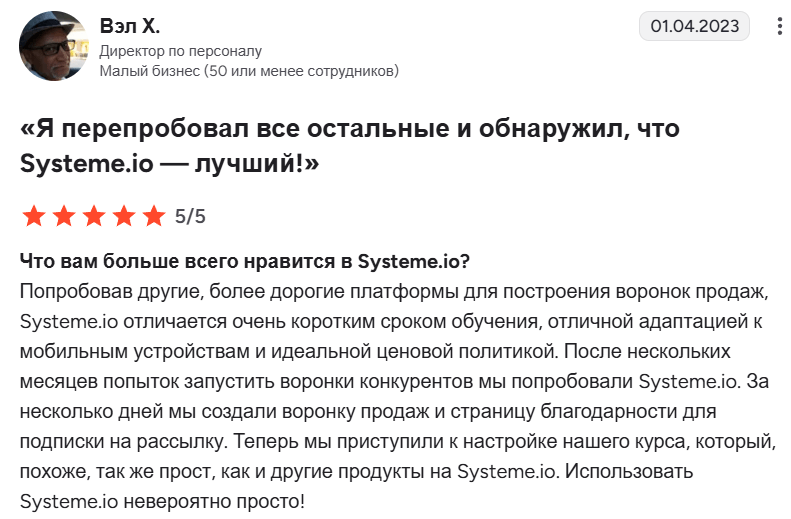 “Я использовал BuilderAll, ClickFunnels и много других платформ. Systeme.io — самый простой и выгодный вариант на сегодняшний день.”