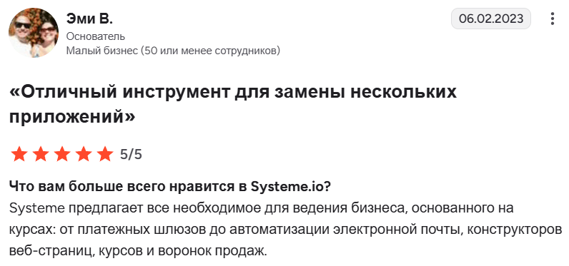 “Мне нравится, что Systeme.io предлагает так много функций на одной платформе. Я пользуюсь ей ежедневно уже почти два года и не сталкивался ни с какими проблемами. Я создал воронки продаж, автоматизацию email-рассылок и блог, чего не могу сделать где-либо ещё. Функции очень просты в использовании, а поддержка клиентов просто великолепна.”