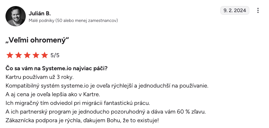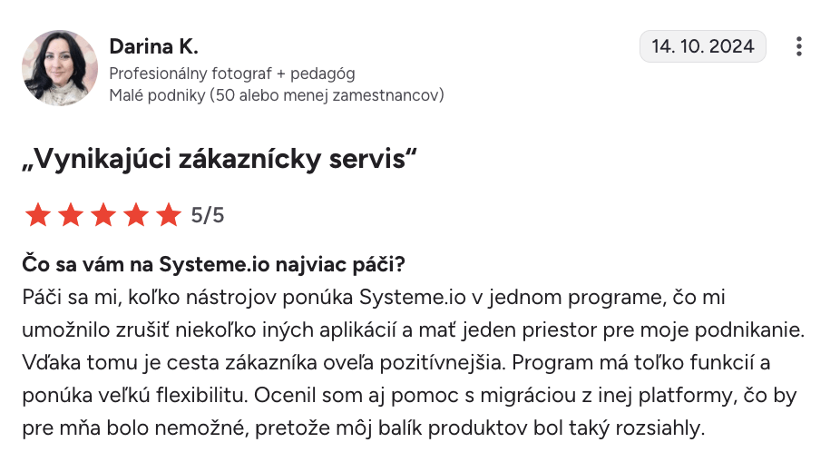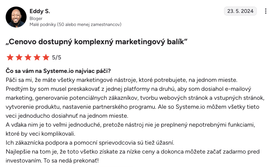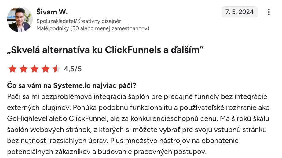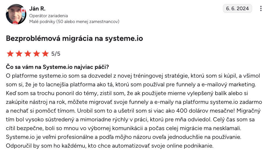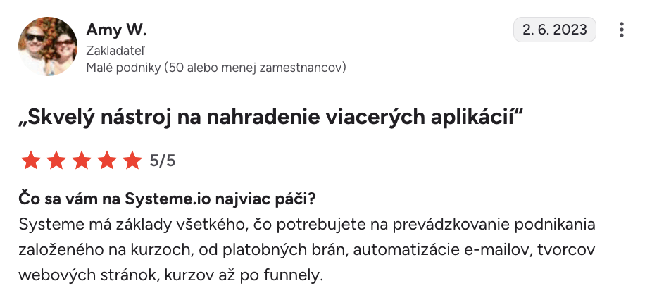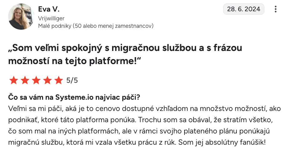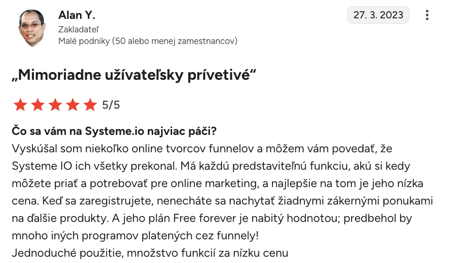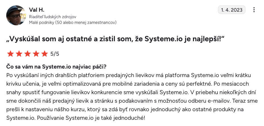 “Systeme.io získava päť hviezdičiek $$$$$$”