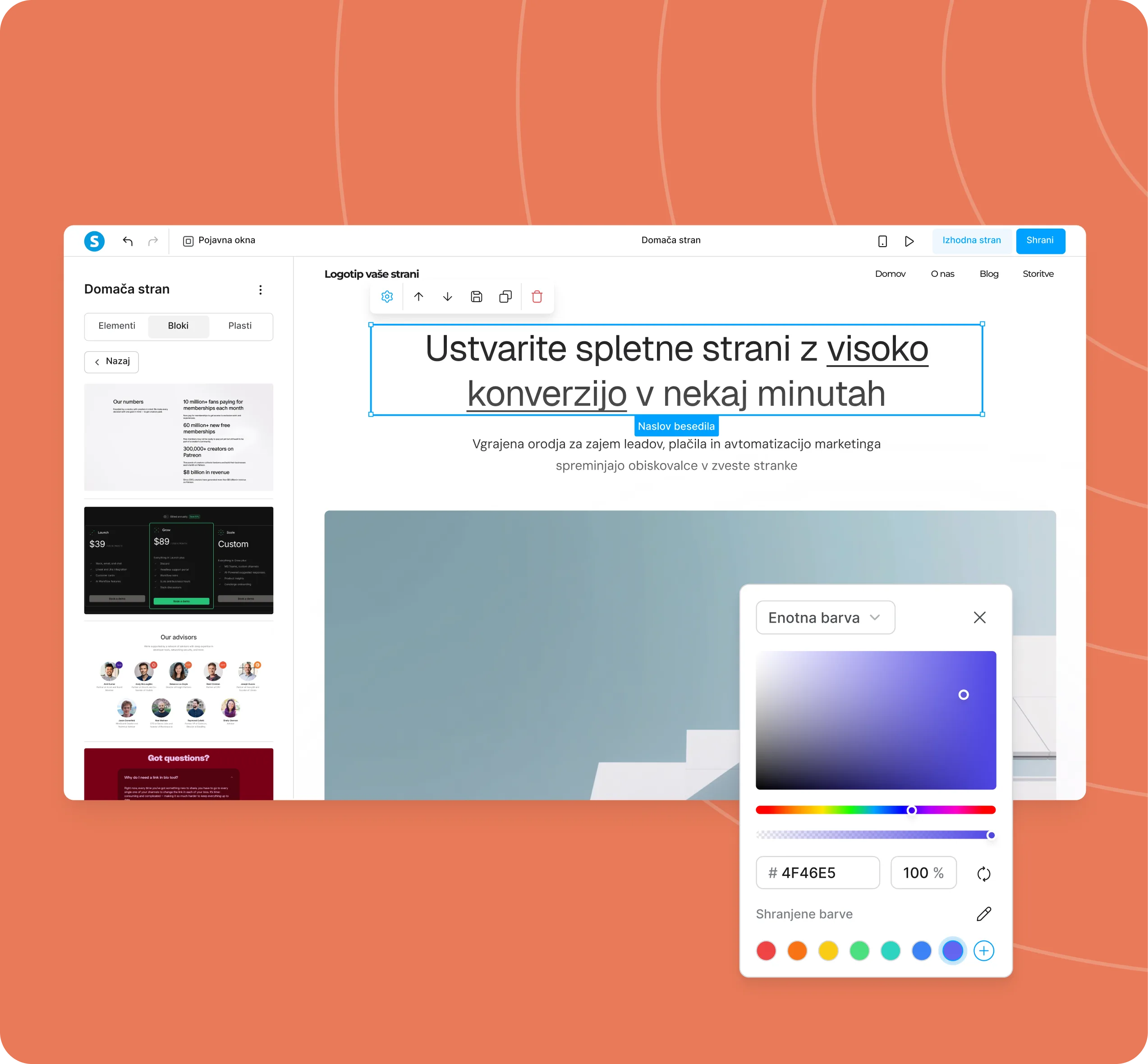 S svojo spletno stranjo boste v živo v nekaj minutah—s pomočjo naših preverjenih predlog in enostavnega vmesnika.
