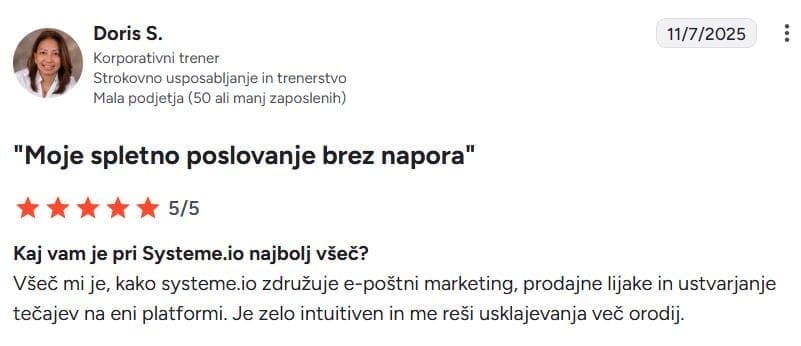 Imejte svojo spletno stran, blog, prodajne lijake in spletne tečaje na profesionalnem URL-ju, kot je www.vasadomena.com. Tako nadomestite privzeti poddomena systeme.io, kar vaši blagovni znamki takoj doda verodostojnost in profesionalno spletno prisotnost.