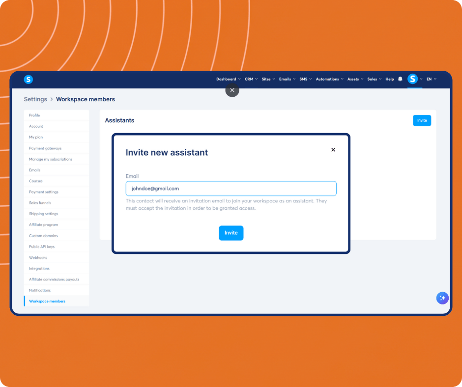 Invite assistants, designers, or clients to specific sub-accounts. You decide who sees what, giving them full admin rights or restricted assistant access