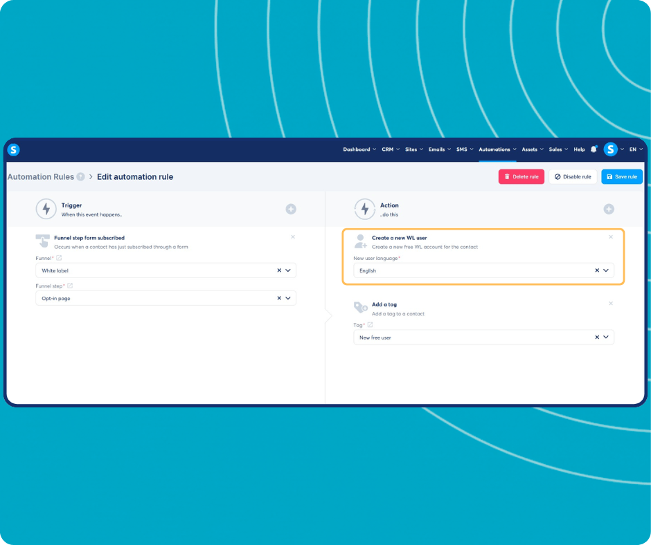 Build a funnel to capture leads and use automation rules to automatically create a free white label account when someone subscribes. New users receive a confirmation email and log in directly to their independent dashboard from your site